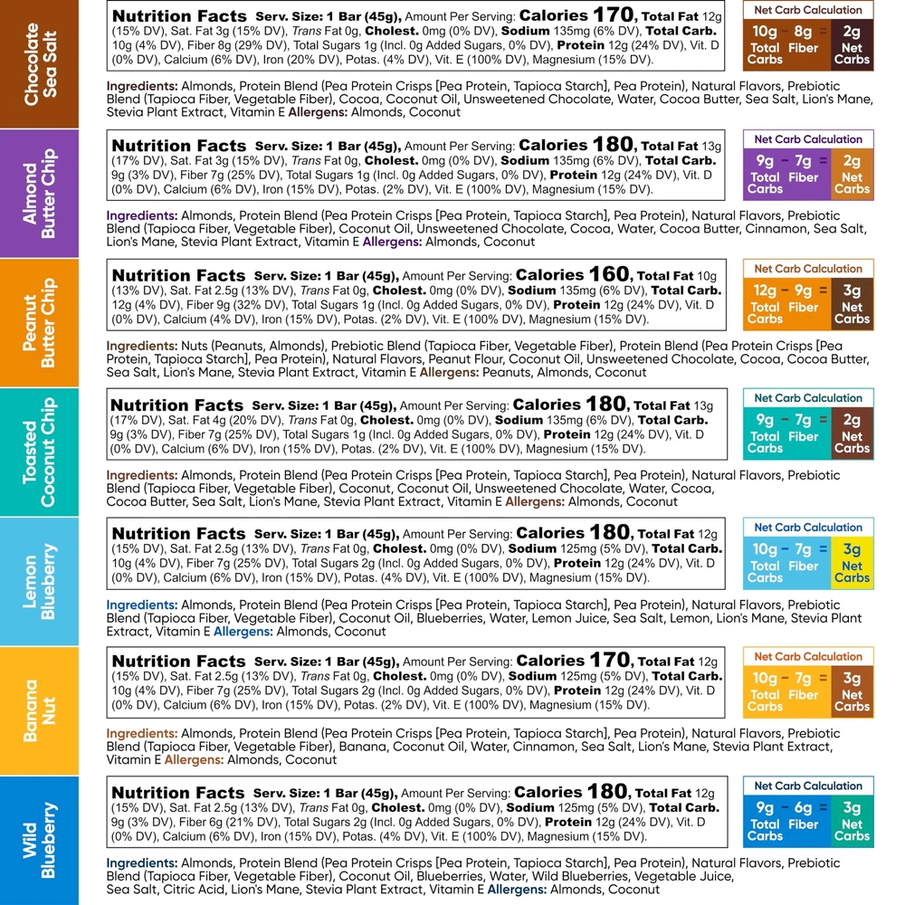 Brain and Body Plant Protein Bars - 7 Bar Sampler Pack - Low Carb, High Fiber, Gluten Free, Healthy Vegan Snacks - Low Sugar Keto Energy Bars NO. 1 KETO-FRIENDLY SNACK BARS FOR BRAIN & BODY - low carb bars are made using simple ingredients + brain nutrients. Designed to keep you full, focused & energized throughout the day, our gluten free protein bars also contain 12g plant-based protein, 1-2g sugar, & only 2-3g net carbs. These vegan keto bars are the ideal low calorie snack to support your active & healthy lifestyle DIET-FRIENDLY PROTEIN SNACKS - Our protein bars are diet-friendly. high protein snacks are vegan, keto-friendly, dairy-free, soy-free, kosher & high in fiber. Our breakfast bars are made using clean-label ingredients and natural flavors that are packed full of nutrients, healthy fats, and compounds for both your brain and body. Moreover, our bars are developed with every diet restriction including celiac, paleo, and vegan PACKED WITH NUTRIENTS FOR THE BRAIN & BODY - clean vegan protein bars are loaded with brain-boosting nutrients, such as Lion’s Mane, Magnesium, Vitamin E, MCTs & Flavonoids. We use a science-backed formulation to provide you with healthy & tasty nutrition bars for your active & busy lifestyle. Throw them in a backpack or lunch box for your kids to enjoy a healthy middle of the day snack. Perfect college care package inclusion for your busy student away MEAL REPLACEMENT BARS YOU CAN ENJOY ON-THE-GO - plant based breakfast bars are convenient meal replacement bars you can enjoy anytime, anywhere. Enjoy our low sugar protein bars right after an intense workout, in the middle of a hectic day at work, or while running errands. Our keto protein bars are perfect for any time of day KETO FRIENDLY SNACKS w/ Only 2-3g Net Carbs in Every Serving - Net carbs are carbs that are absorbed by the body, and our keto treats come with only 2-3g of net carbs in every serving. Each keto plant based protein bar is packed with 9-12g of total carbs, 6-9g of fiber, 10-13g of fats & 160-180 calories. Try our 7 flavors Chocolate Sea Salt, Peanut Butter Chip, Almond Butter Chip, Toasted Coconut Chip, Lemon Blueberry, Banana Nut, and Wild Blueberry Shipping We offer FREE shipping on all orders! We ship within Three business days of payment, usually sooner. We use a selection of shipping services such as UPS, FedEx, USPS etc. We only ship to the lower 48 states, no APO/FPO addresses or PO Boxes allowed. Local pickups and combined shipping options are not provided at this time. Return You can return a product for up to 30 days from the date you purchased it. Any product you return must be in the same condition you received it and in the original packaging. Please keep the receipt. Payment We accept payment by any of the following methods: PayPal Please pay as soon as possible after winning an auction, as that will allow us to post your item to you sooner! Feedback Customer satisfaction is very important to us. If you have any problem with your order, please contact us and we will do our best to make you satisfied. Contact Us If you have any queries, please contact us via ebay. We usually respond within 24 hours on weekdays. Please visit our eBay store to check out other items for sale! Thank you for shopping at our store.