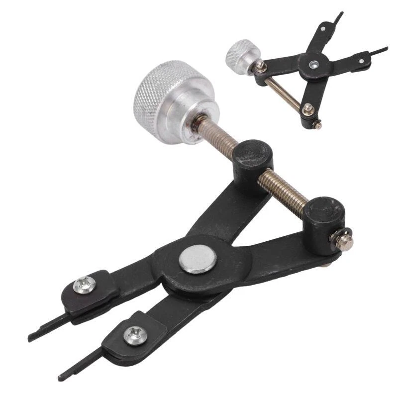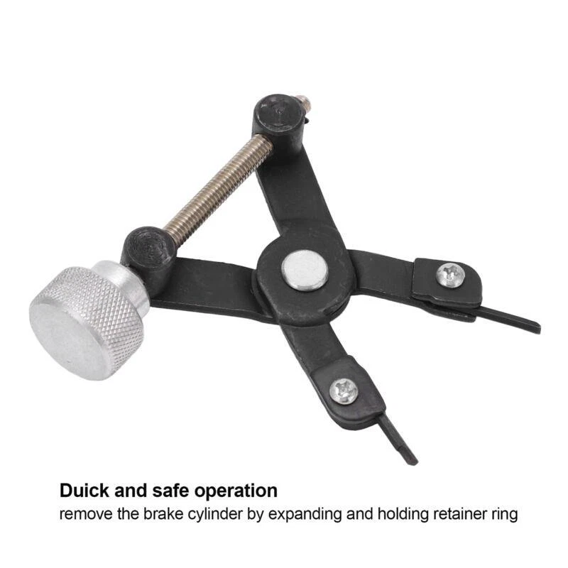 Feature: 1. Release Spring Retainer: Brake retainer spring removal tool can release the spring clip retainer that attaches the rear brake cylinder to backing plate. 2. Remove Brake Cylinder: Brake cylinder locking rings remover can remove the brake cylinder by expanding and holding retainer, quick and safe . 3. Universal Application: Brake cylinder retainer removal tool is suitable for removal and installation of locking rings on drive shafts when removing CV joint. 4. Easy to Use: Brake cylinder retainer remover is simple to use, insert the tool tips into the retainer and expand by turning the knob, practical tool. 5. Premium Material: CV joint locking rings remover is made of premium metal material, professional manufacturing, high hardness, can be used for a. Specification: Item Type: Brake Cylinder Retainer Remover Material: Metal Fitment: Universal Package List: 1 x Brake Cylinder Retainer Remover