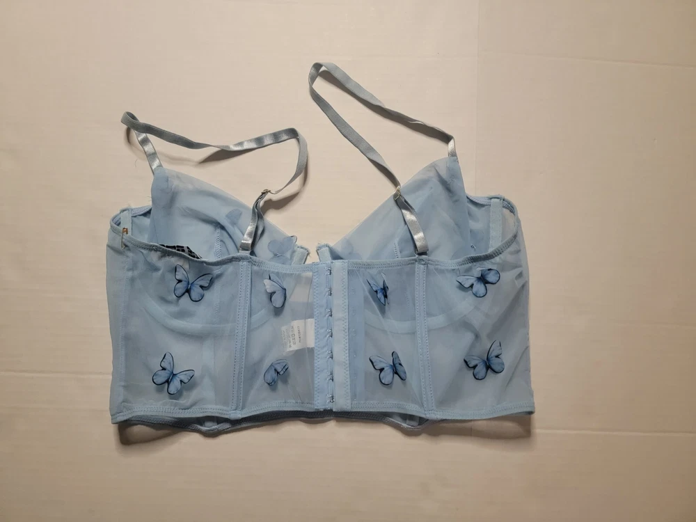 This Tic Toc bralette is a must-have for any animal print lover. The powder blue color and butterfly strap design make it a unique addition to your lingerie collection. The pullover closure and sheer fabric add to the comfortable and playful feel of this bra. Made with a blend of spandex and nylon, this bralette is perfect for any occasion. The size 2X and petite size type ensure a perfect fit for any woman. The Tic Toc brand guarantees high quality and style, making this bralette a great choice for anyone looking for a comfortable and stylish bra.