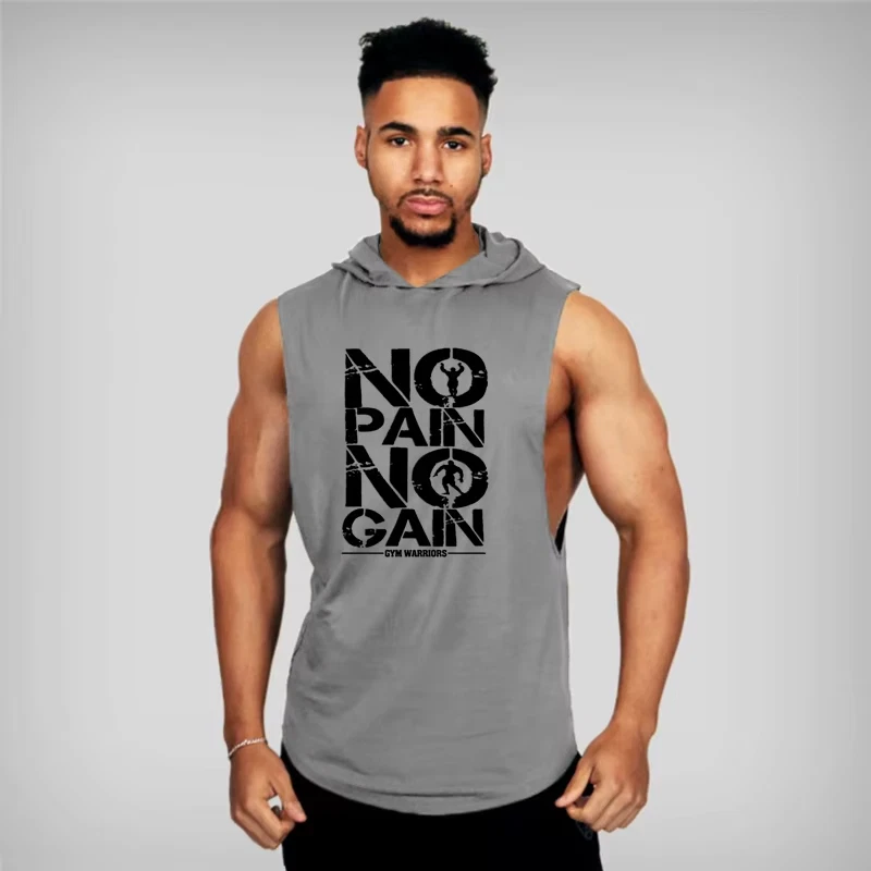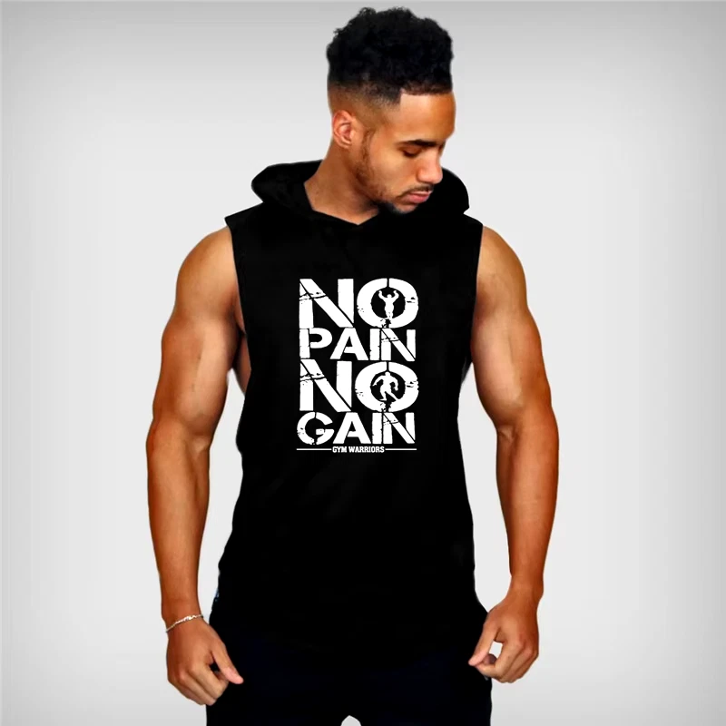 Brand Gyms Clothing Mens Bodybuilding Hooded Tank Top Cotton Sleeveless Vest Swe