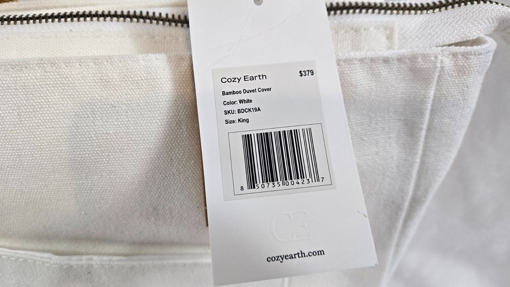 Character: Luxury gtin13: 850735004237 Model: Bamboo Duvet Cover Color: White Brand: Cozy Earth Size: King Number of Items in Set: One Material: Bamboo, Viscose Product Line: Cozy Earth Care Instructions: Machine Wash Fill Material: Bamboo Pattern: Solid Color Item Length: 100” Item Width: 112” Closure Type: Ties Set Includes: Duvet Cover UPC: 850735004237 Character Family: Elegance Department: Adults, Teens, Kids Theme: Luxury Features: Cooling, Machine Washable, Premium Bamboo Type: Duvet Cover Room: Bedroom Style: Luxurious