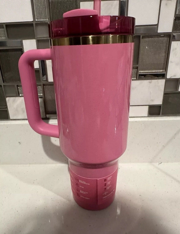 Introducing the brand new Target Exclusive Wicked Glinda Stanley 40 Oz. Quencher H20 Tumbler! This tumbler is perfect for anyone who loves hot or cold beverages on-the-go. Made of high-quality stainless steel, this tumbler is decorated with a glittery Wicked logo and comes with a handle, lid, and straw for easy drinking. With a capacity of 40 oz, this tumbler is great for teens, adults, and girls who need to stay hydrated throughout the day. Whether you're headed to school, work, or on a road trip, this tumbler will keep your drinks hot or cold for hours. Plus, it's spill-proof and insulated to keep your drink safe and secure. Get your hands on this exclusive tumbler today!