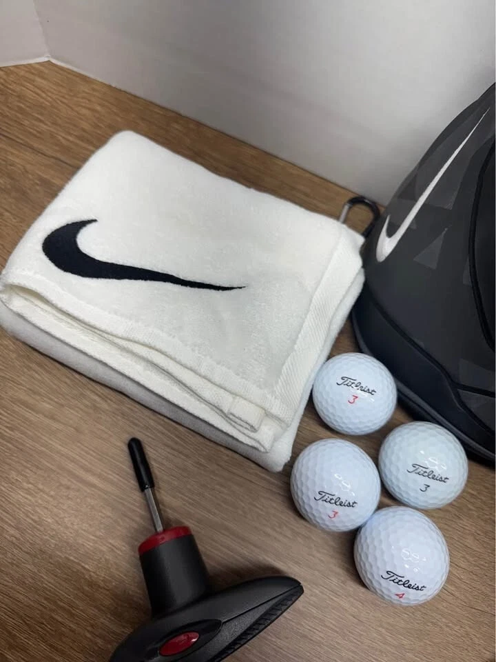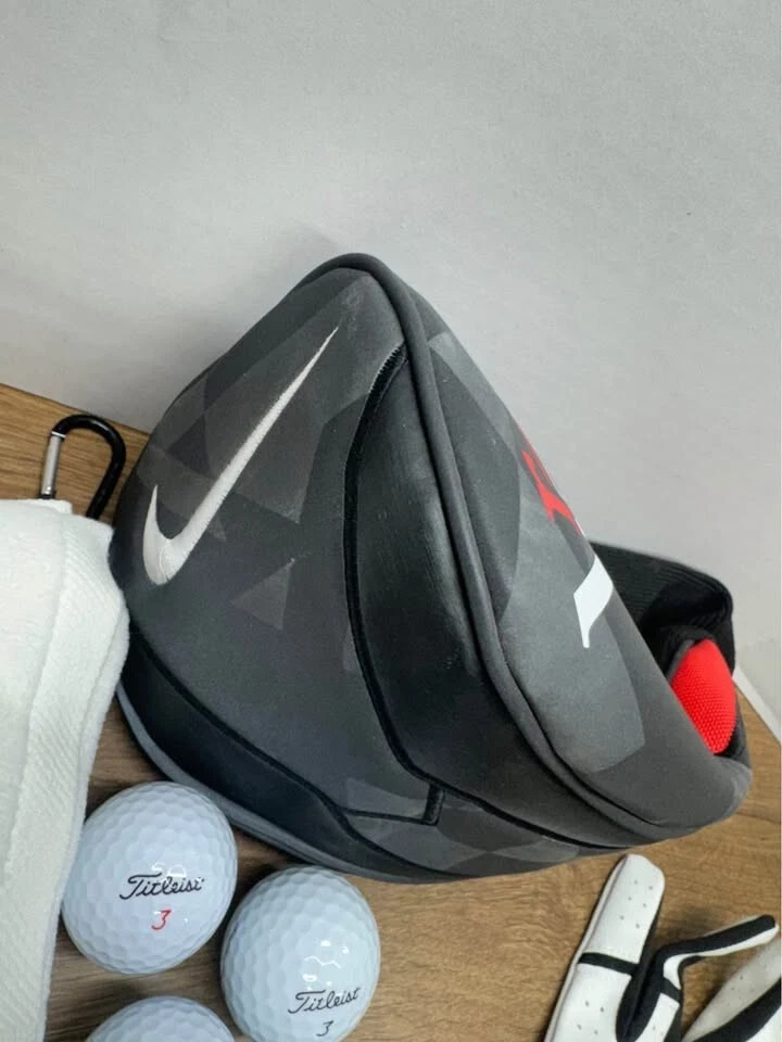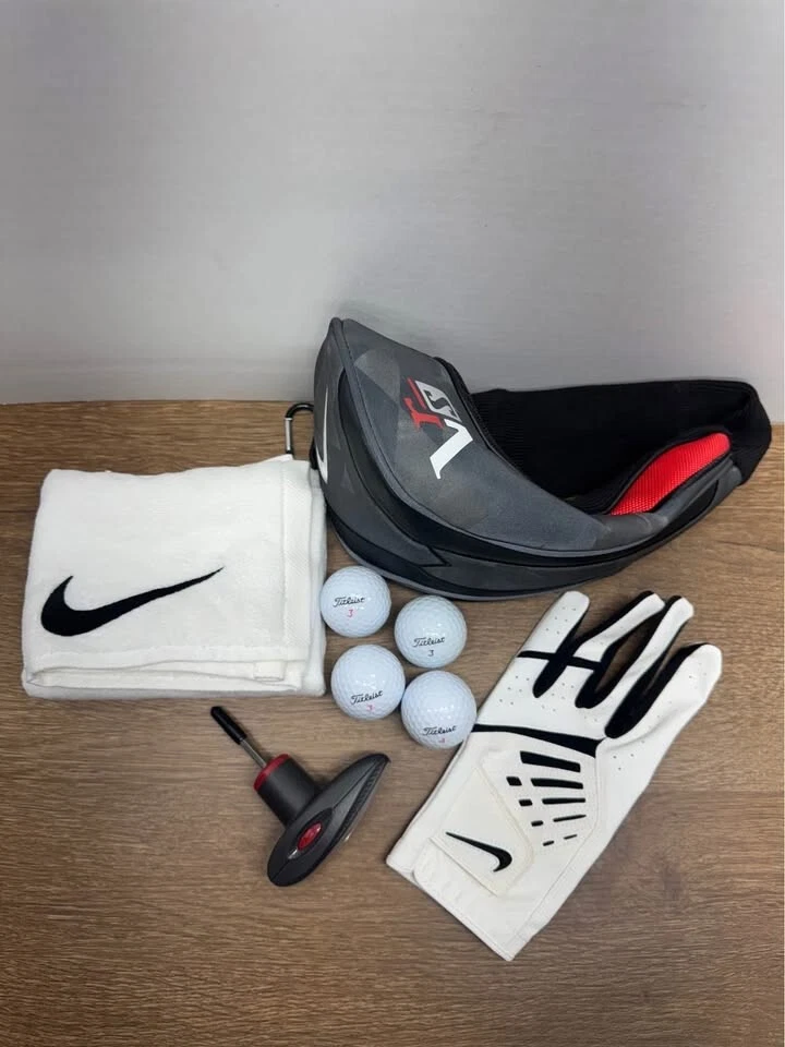 Everything is brand new, never used once, no longer have the original packaging. Selling as a set only. The lot includes: (1) Nike Men's Dura Feel IX White Left Hand Golf Glove, Size Large(1) Nike Performance Golf Towel White | Black(1) Nike Golf VR-S Covert Driver Black/Silver/Red Headcover(1) Nike Vapor Driver Torque Wrench(4) Titleist golf balls