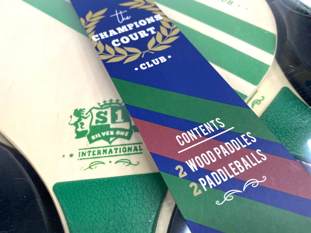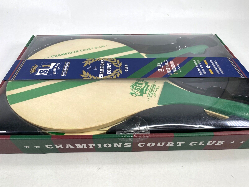 S1 – Silver One International Green Paddleball Set The Champions Court Club • Two Wood Paddles • Two Paddleballs Brand New, factory sealed! We're also selling blue and burgundy sets _______________________________ Please wait for combined invoice before paying Visit our store for 1,000+ items – Thank You!