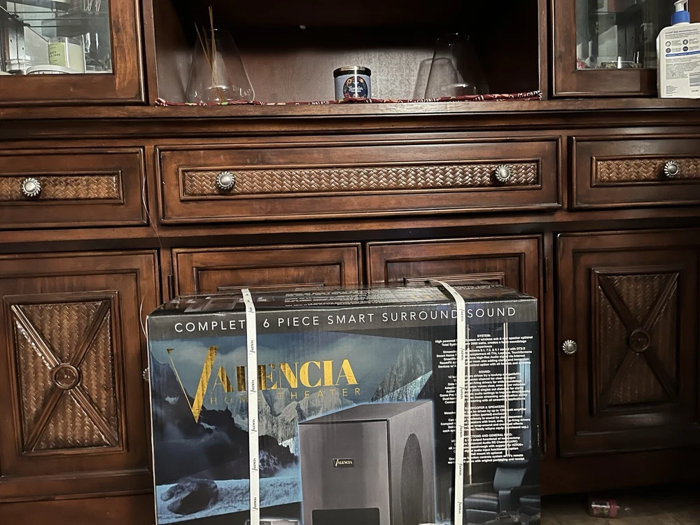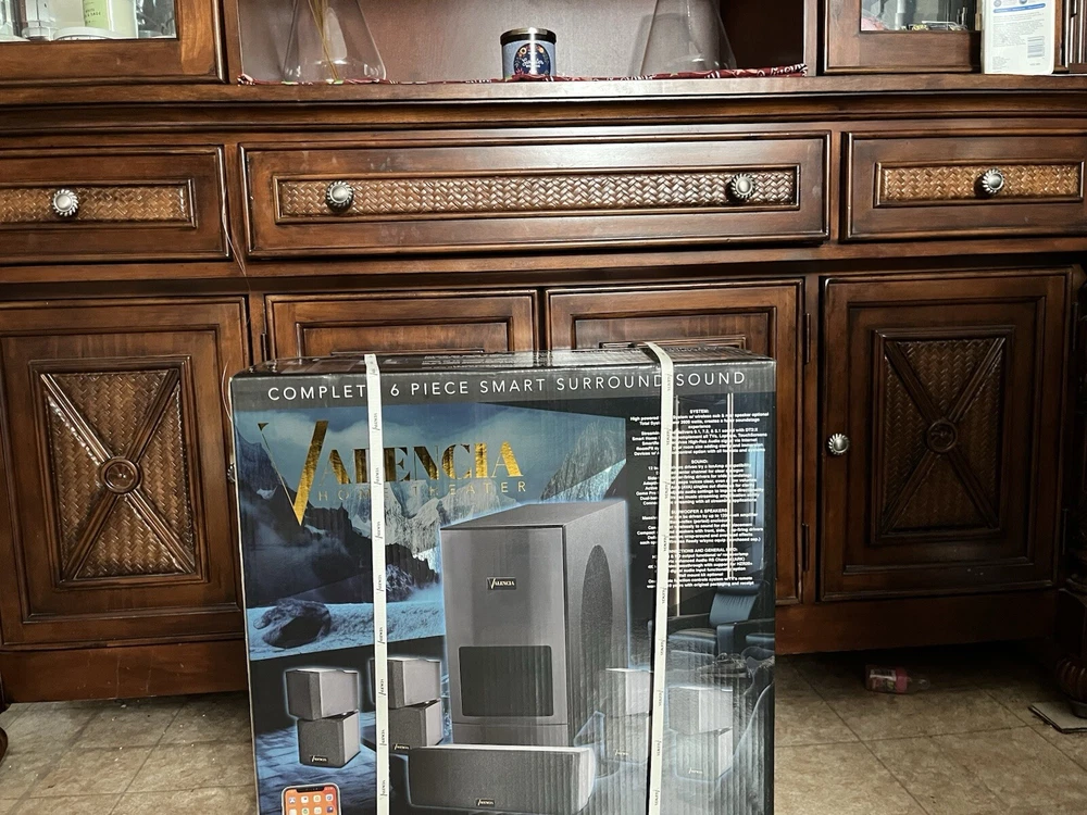 Introducing the brand new Valencia 6 Piece Home Theatre Sound System, perfect for any movie or music lover. With a powerful 2600W RMS power output, this rectangular shaped system configuration delivers an immersive audio experience. The unit features wireless and Bluetooth connectivity, making it easy to connect to your favorite devices. This black colored sound system is designed with a 7.1 channel model and is sure to impress with its high-quality audio output. Whether you're watching a movie or listening to music, the Valencia home theatre sound system is the perfect addition to your home audio setup.