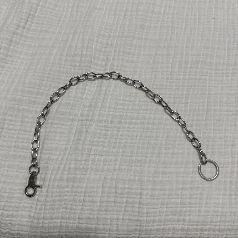 Elevate your accessory game with this stylish Brandy Melville Silver Wallet Side Chain Clasp and Wallet Hoop. Perfect for women who love to keep their essentials close, this key chain features a detachable wallet hoop with a ring and clasp accent. The stainless steel material ensures durability while the silver color adds a touch of elegance. The wallet hoop is perfect for festivals and celebrity-themed events, with a solid pattern and a one-size-fits-all design. This key chain is a must-have for any stylish woman who wants to add a touch of sophistication to her accessories. Made in China, this item is not handmade and cannot be personalized. Good used condition - all wear is pictured please let me know if you have any questions 🥳