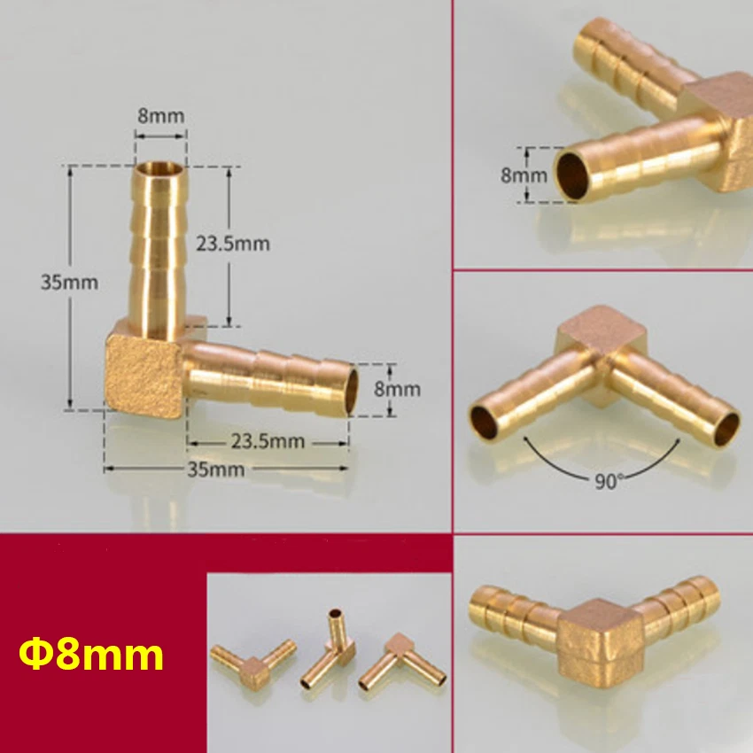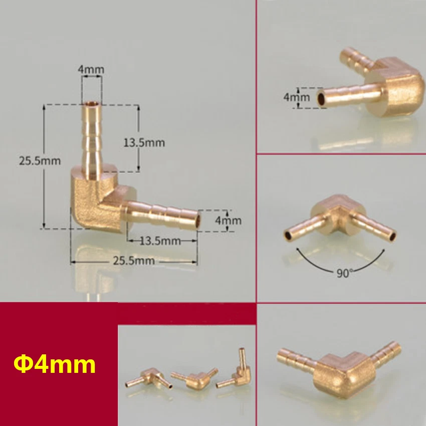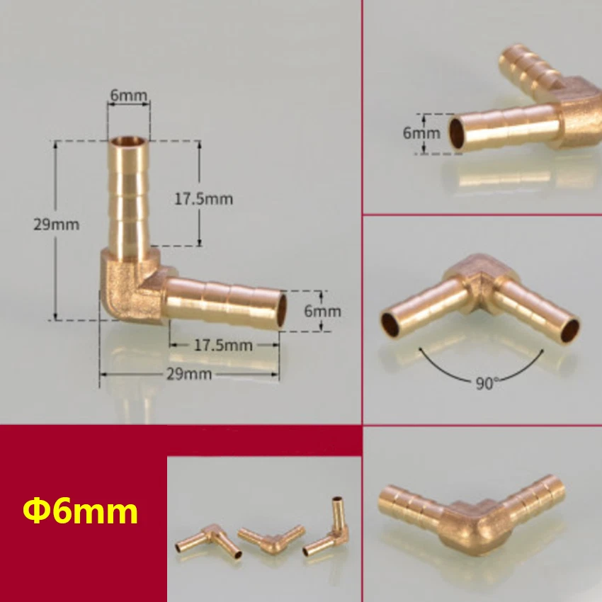 Ø 4/6/8/10/16mm Fuel Gas Hose Nozzle Crimp Barbed Connector 90° Elbow Brass Plumbing Fittings Features: ● High quality material , Safe,Reliable. Resistant to high temperature, Resistant to high pressure and Resistant to explosion. ● Stable and reliable, easy to install. ● Material: Brass ● Sizes: Φ 4/6/8/10/16 mm . (According to your choice)