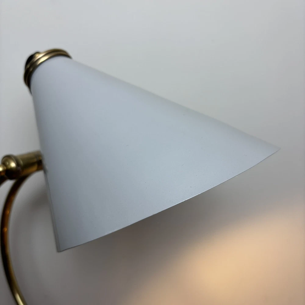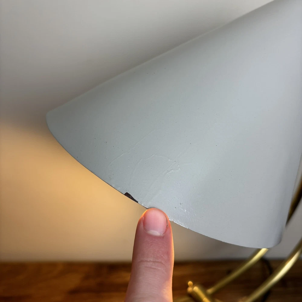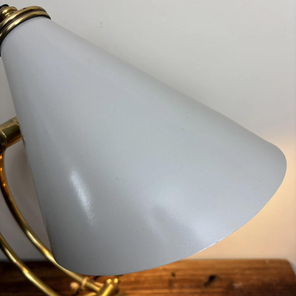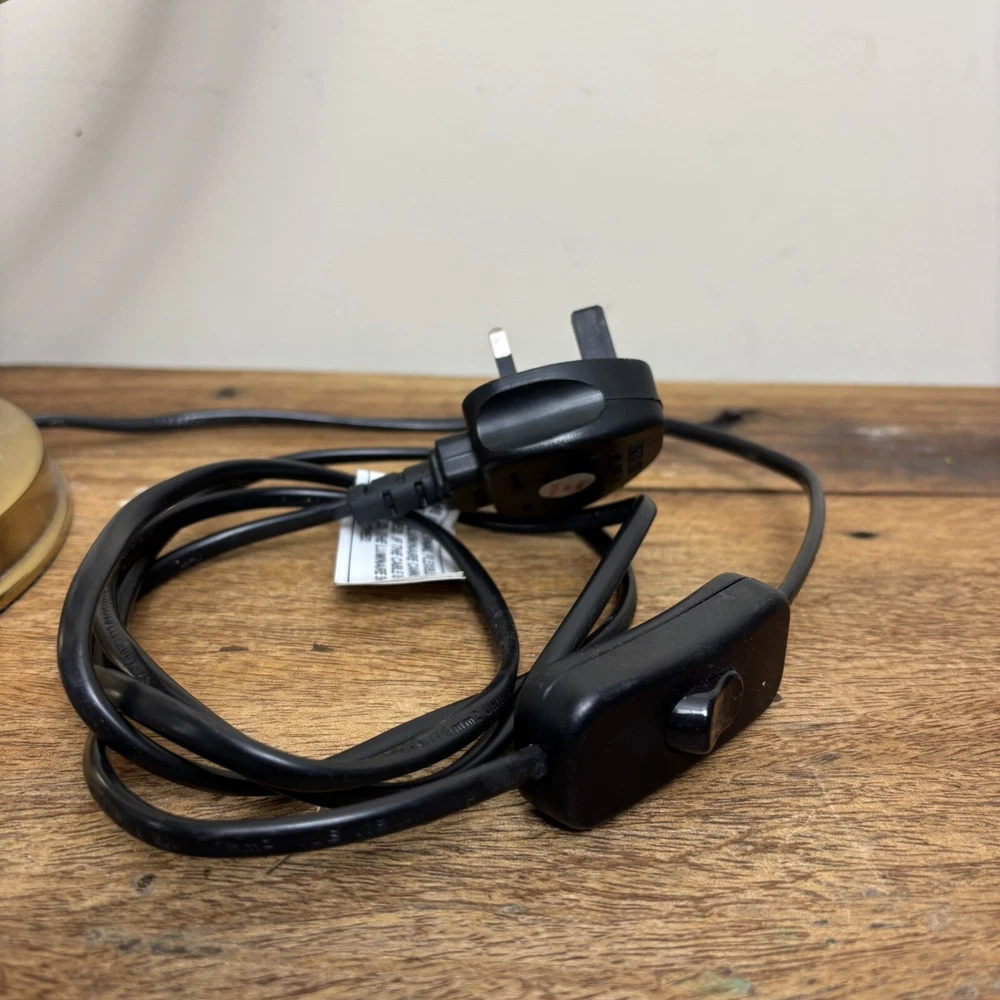 Brass Desk Lamp An incredibly aesthetic desk lamp that blends an antique brass look with a contemporary shade. The main body has a traditional and somewhat vintage look that is contasted with the more modern style shade. This contrast creates a lamp that feels homely and unique. There are two levers to adjust the lamp. One adjusts the angle of the arm and the other adjusts the angle of the shade. These are super tactile and a great feature to adjust the lamp to any space. These come complete with LED bulb and built in, in-line switch. *Please note that this lamp is ex-display. This does have a small imperfection where the paintwork on the shade is chipped. This is therefore offered at a heavily discounted rate. So if you can live with this imperfection, you’ll be grabbing a bargain!* Measurements: Height: 50cm Base Diameter: 18cm Shade Diameter: 20cm Free U.K. delivery via Royal Mail. Please enquire for more details.