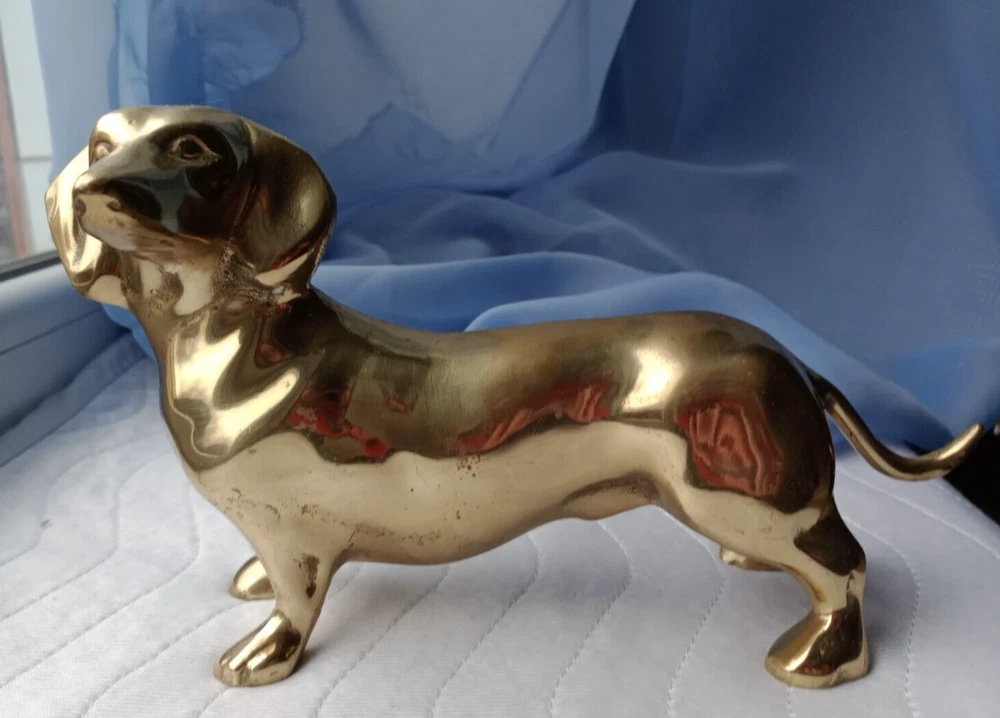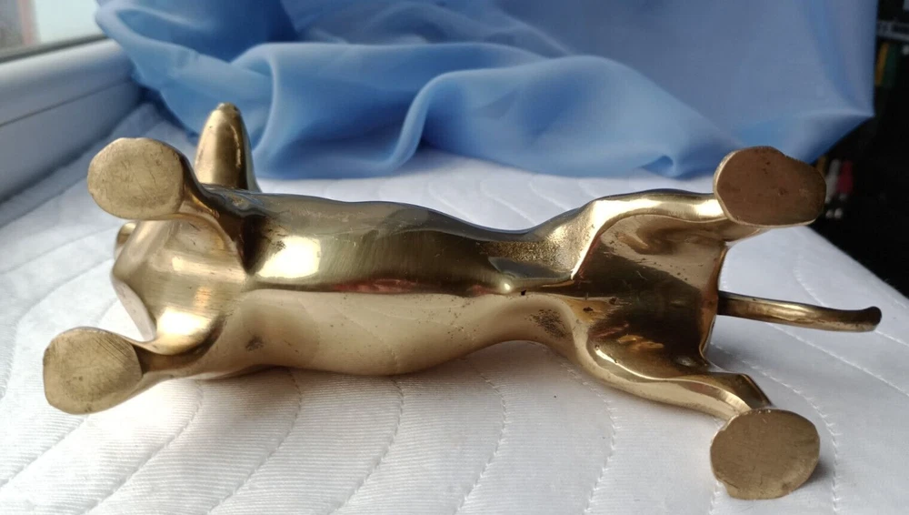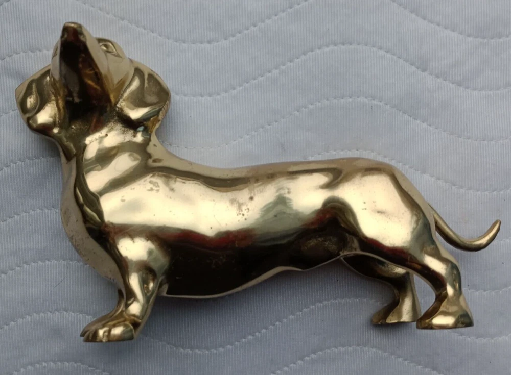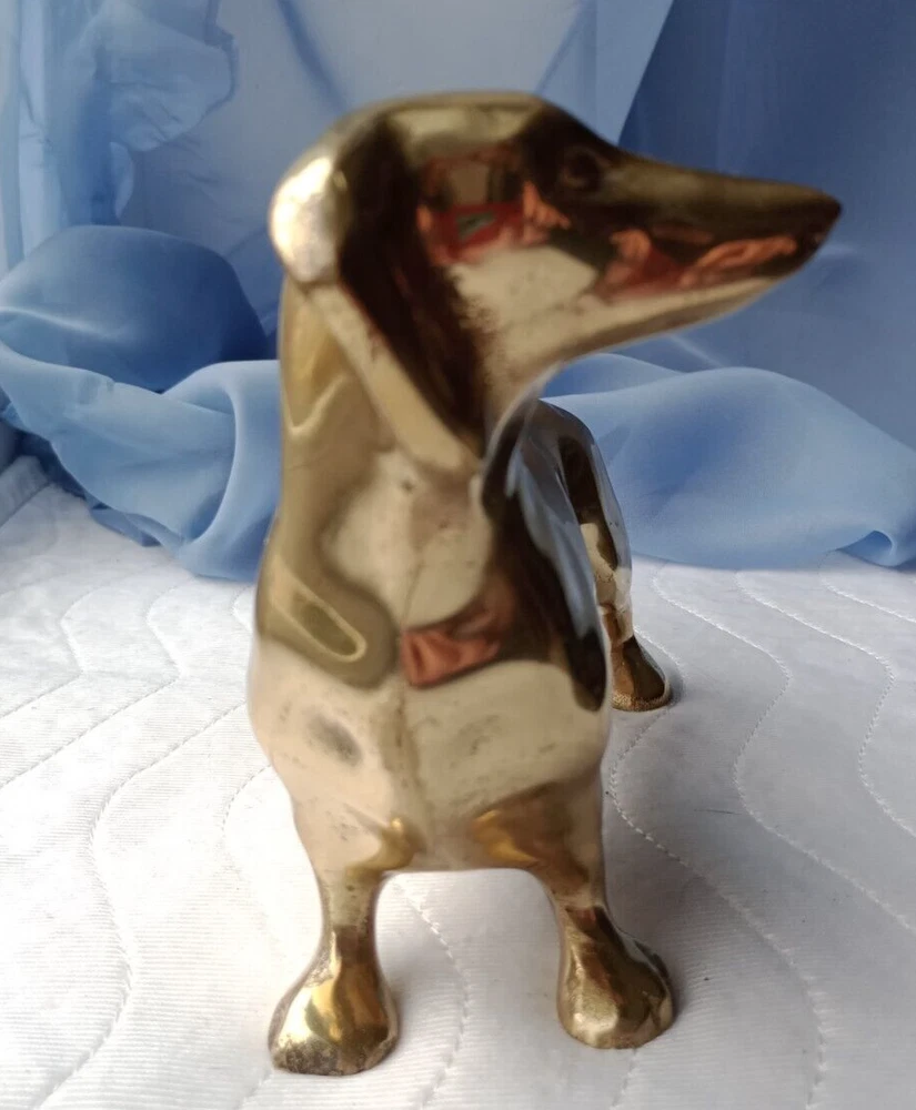 DESCRIPTION 🌟Brass Figurine, Dog Statue. Desk Art Figurine. Hunting Dog Dachshund Breed🌟 A great specimen for your collection! Look carefully at the photo! Materials: brass Dimensions : Length from tail to ears - 22 cm - 8.7 inches, weight 730 g D efects : traces of the influence of time, scratches, paint scuffs Importantly! *All products are sold in an "as is" condition. * We try to make as true photos as possible, but actual colors may differ slightly from their appearance on your display. * All photos are real!! DELIVERING PROCESS * Shipping is made by Economy International Shipping from Ukraine. * Combined delivery is possible * Purchased item will be shipped within 1-3 days after 100% payment * Your order will be carefully packed to ensure it reaches you in perfect condition. * Usually delivery from Ukraine takes 10-35 days PAY MENT PROCESS * To get your order you need to pay in 3 days after winning. * You can pay According to eBay's Payment methods policy CUSTOMER SUPPORT * In case you have any questions, want to request any additional information or photos do not hesitate to contact us. * Always happy to help! We appreciate your feedback!