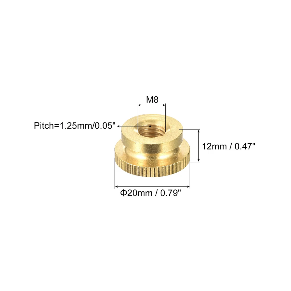 Document Description: 1. Made of brass, this thumb nut knob is good for needs requiring high appearance, has corrosion resistance, rust resistance, good wear resistance, well fastening function and long-lasting service than other material.2. Applied in home appliances, communications industry, automotive industry, etc. Widely used in the installation, maintenance, and fixing of various daily needs: such as 3D printer beds, mechanical assemblies, machine tools, electronic equipment, communication equipment, furniture cabinets, ornamental products, and so on.3. No tools are required. Knurled head thumb nuts provide a solid grip and smooth surface, making it easier to tighten or loosen the fastener by hand.Specification:Material: BrassColor: Brass ToneThread Size: M8Thread Pitch: 1.25mm/0.05”Head Diameter: 20mm/0.79"Head Thickness: 12mm/0.47”Package Content:4 x Round Knurled Thumb Nuts M4x40mm Hanger Bolts, 120pcs Double Ended Thread Dowel Screws USD 21.06 M10x80mm Hanger Bolts, 8pcs Double Head Thread Dowel Screws for Wood Furniture USD 16.86 M10x20mm Hex Serrated Flange Bolts 10.9 Grade Carbon Steel Screws 5pcs USD 12.54 Hex Washer Self Drilling Screws, #10 x 1" 410 Stainless Steel Screw 25pcs USD 10.81 #8 x 5/8" 410 Stainless Steel Phillips Head Self Drilling Screws 100pcs USD 13.68 M5 x 8mm 304 Stainless Steel Spring Hex Socket Ball Point Set Screws 20pcs USD 10.81 Brass Knurled Thumb Nuts, M8x1.25mm Round Stepped Knobs Fasteners 4Pcs Description: 1. Made of brass, this thumb nut knob is good for needs requiring high appearance, has corrosion resistance, rust resistance, good wear resistance, well fastening function and long-lasting service than other material. 2. Applied in home appliances, communications industry, automotive industry, etc. Widely used in the installation, maintenance, and fixing of various daily needs: such as 3D printer beds, mechanical assemblies, machine tools, electronic equipment, communication equipment, furniture cabinets, ornamental products, and so on. 3. No tools are required. Knurled head thumb nuts provide a solid grip and smooth surface, making it easier to tighten or loosen the fastener by hand. Specification: Material: Brass Color: Brass Tone Thread Size: M8 Thread Pitch: 1.25mm/0.05” Head Diameter: 20mm/0.79" Head Thickness: 12mm/0.47” Package Content: 4 x Round Knurled Thumb Nuts Hot Item M3 Zinc Plated Self Clinching Rivet Nut Fastener 100pcs for 1mm Thin Plates USD 8.22 Album Leather Book Nickel Plated Screw Post Binder Binding Tool 5x40mm 20pcs USD 12.96 5pcs Shoulder Bolt 5mm Shoulder Dia 5mm Shoulder Length M4 Thread USD 9.37 6mm x 25mm Plastic Expansion Nail Plugs Wall Anchor Screw White 50pcs USD 7.31 M2x5mm 10.9 Alloy Steel Button Head Hex Socket Cap Screw Bolt Black 50pcs USD 8.22 Payment We accept eBay payment. Please do not email us to ask for other payment option. We appreciate prompt payment and look forward to your business in the future. Unpaid item will be filed without receiving payment in 7 days from listing ended. Shipping Usually we ship your order out within 24 hours in business day. For shipping and handling charges (S&H) for specific item, please refer to the item listing page for more details. Please make sure your shipping address is correct. We are not responsible for any loss in transit if a wrong address is provided. Return Policy Returns for exchange are permitted and must be initiated by the buyer within 30 days upon receipt. If you would like to return your product(s) for repair / replacement / refund, please kindly contact our customer service representatives via email for an authorized RMA number. Your returned product(s) will not be processed without a completed RMA. About Us We are continually expanding our product selection to better serve your need. We look forward to providing the best sevice to you - our dear customers, so take a look around our store and find the product that you want. You can put your trust in us! If you need any help or have any suggestions, please don't hesititate to contact us anytime , we will reply you within 24 hours and try the best to help you. Description Policy Brass Knurled Thumb Nuts, M8x1.25mm Round Stepped Knobs Fasteners 4Pcs Description: 1. Made of brass, this thumb nut knob is good for needs requiring high appearance, has corrosion resistance, rust resistance, good wear resistance, well fastening function and long-lasting service than other material. 2. Applied in home appliances, communications industry, automotive industry, etc. Widely used in the installation, maintenance, and fixing of various daily needs: such as 3D printer beds, mechanical assemblies, machine tools, electronic equipment, communication equipment, furniture cabinets, ornamental products, and so on. 3. No tools are required. Knurled head thumb nuts provide a solid grip and smooth surface, making it easier to tighten or loosen the fastener by hand. Specification: Material: Brass Color: Brass Tone Thread Size: M8 Thread Pitch: 1.25mm/0.05” Head Diameter: 20mm/0.79" Head Thickness: 12mm/0.47” Package Content: 4 x Round Knurled Thumb Nuts M4x40mm Hanger Bolts, 120pcs Double Ended Thread Dowel Screws USD 21.06 M10x80mm Hanger Bolts, 8pcs Double Head Thread Dowel Screws for Wood Furniture USD 16.86 M10x20mm Hex Serrated Flange Bolts 10.9 Grade Carbon Steel Screws 5pcs USD 12.54 Hex Washer Self Drilling Screws, #10 x 1" 410 Stainless Steel Screw 25pcs USD 10.81 #8 x 5/8" 410 Stainless Steel Phillips Head Self Drilling Screws 100pcs USD 13.68 M5 x 8mm 304 Stainless Steel Spring Hex Socket Ball Point Set Screws 20pcs USD 10.81 Hot Item M3 Zinc Plated Self Clinching Rivet Nut Fastener 100pcs for 1mm Thin Plates USD 8.22 Album Leather Book Nickel Plated Screw Post Binder Binding Tool 5x40mm 20pcs USD 12.96 5pcs Shoulder Bolt 5mm Shoulder Dia 5mm Shoulder Length M4 Thread USD 9.37 6mm x 25mm Plastic Expansion Nail Plugs Wall Anchor Screw White 50pcs USD 7.31 M2x5mm 10.9 Alloy Steel Button Head Hex Socket Cap