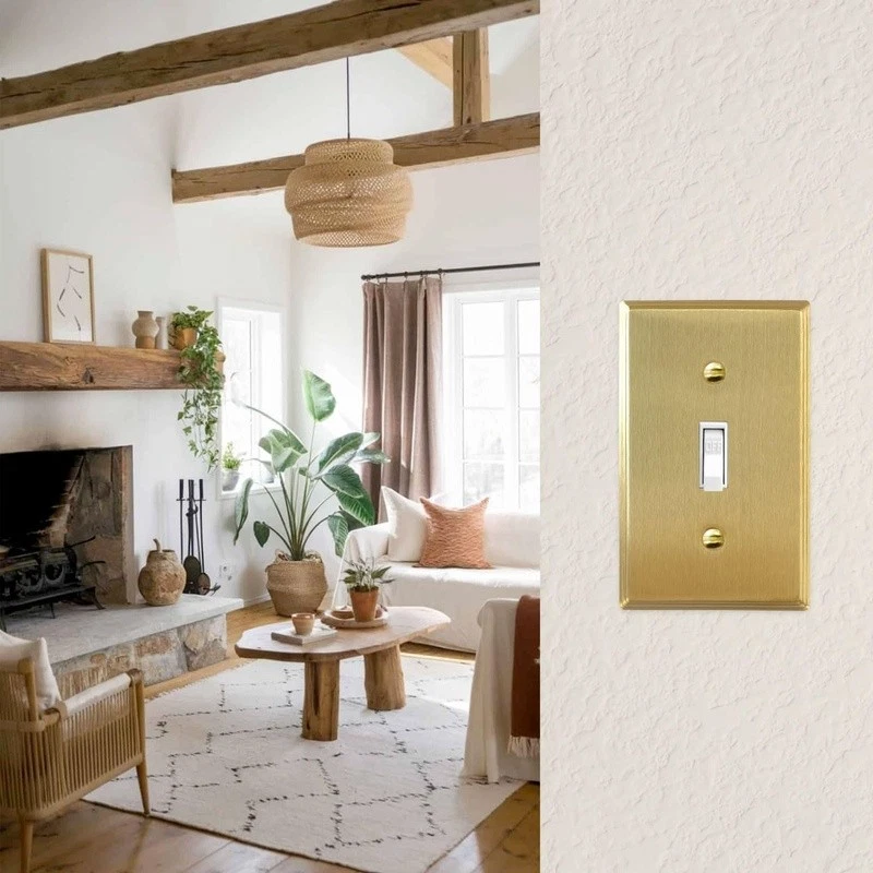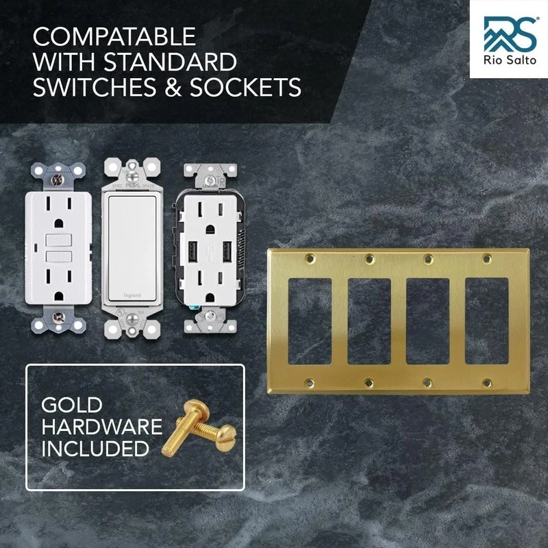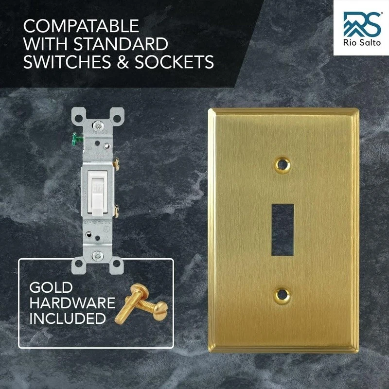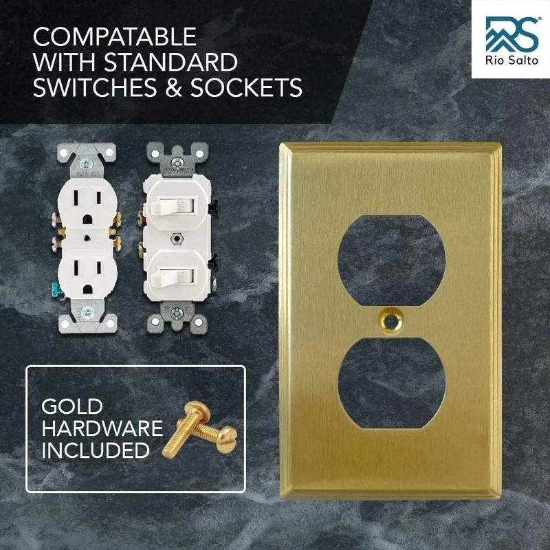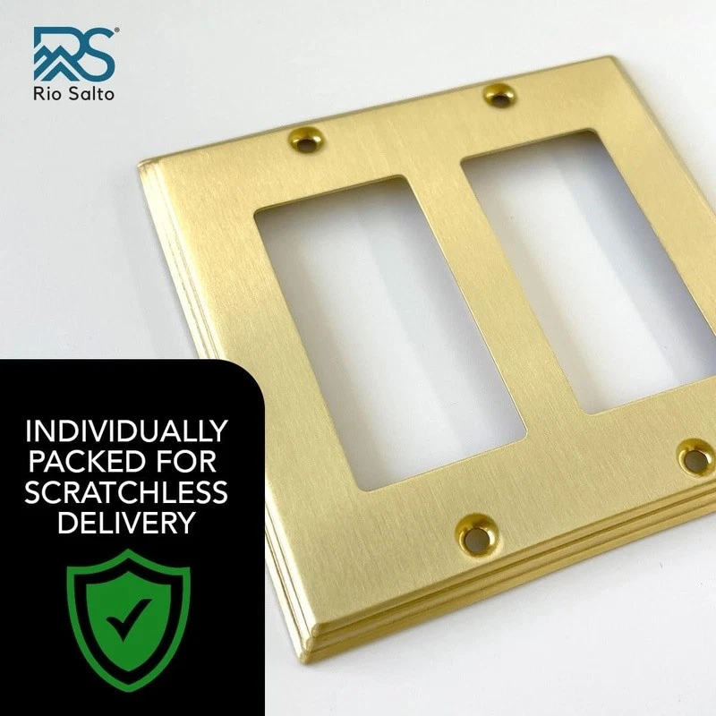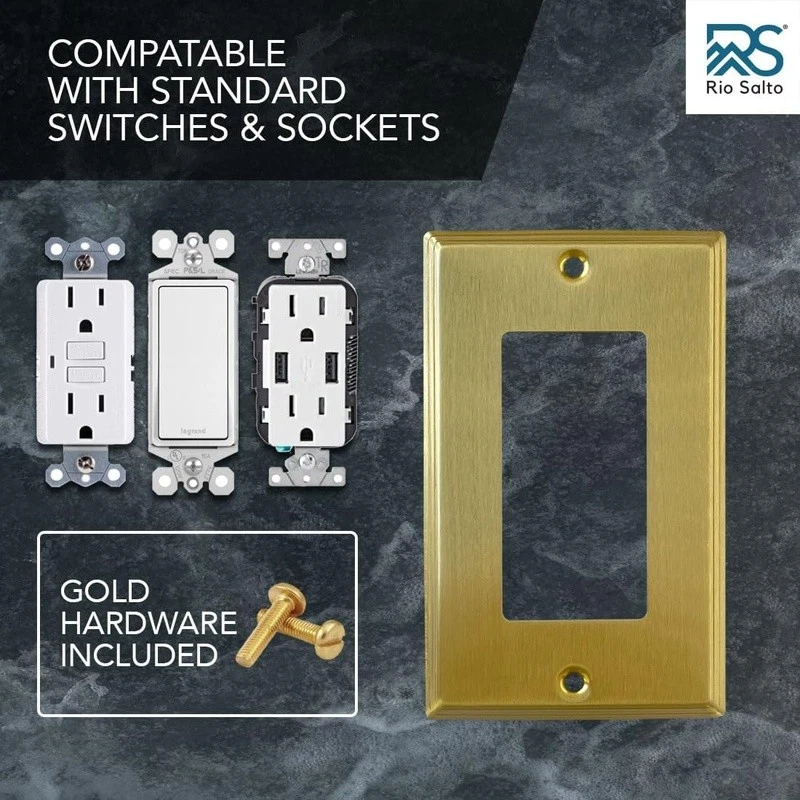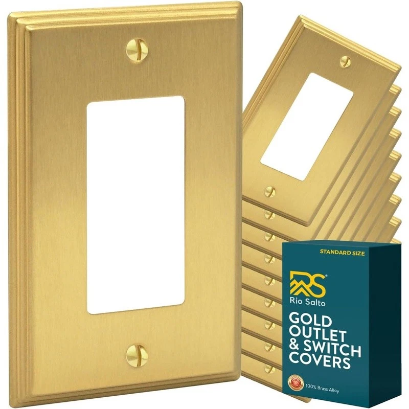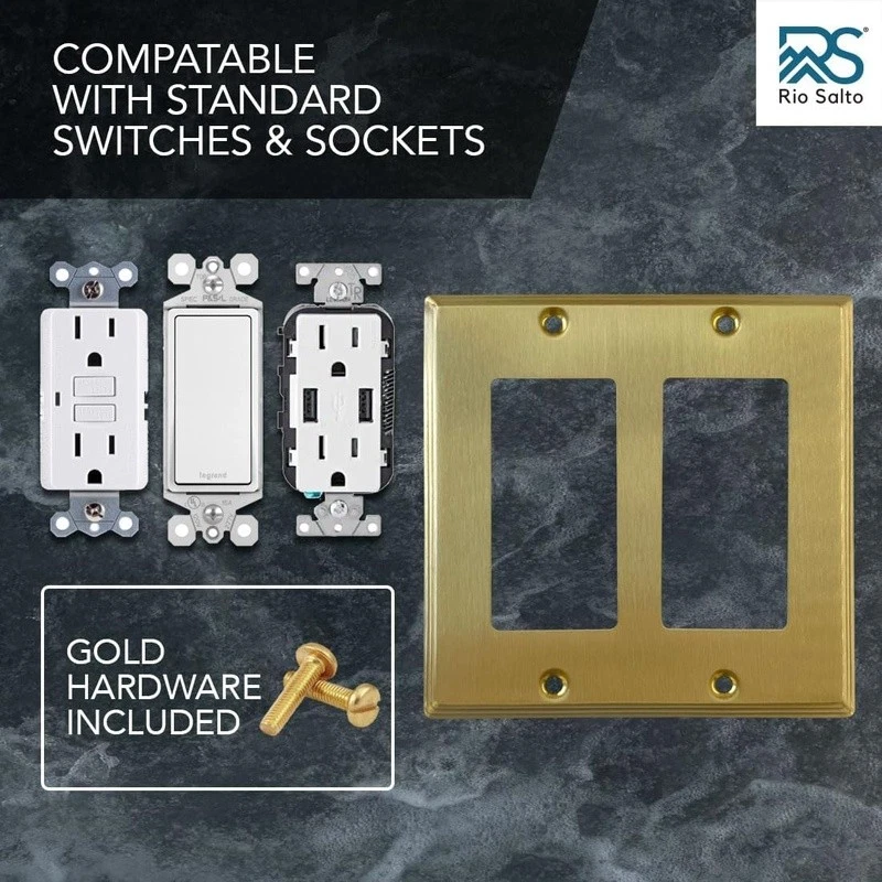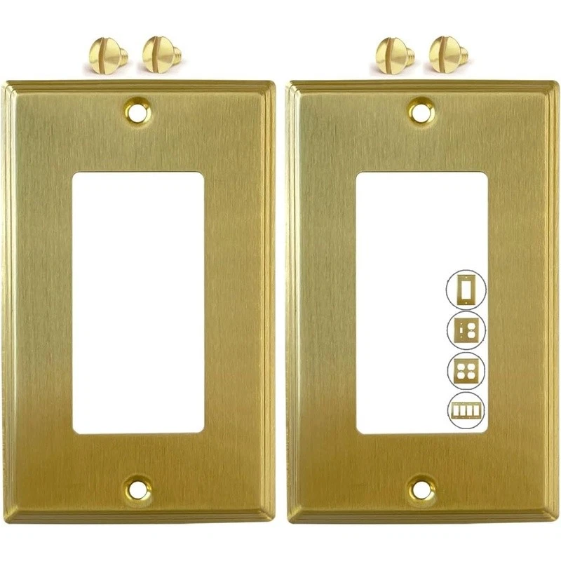 You may also like Contemporary Stacked Stone Table Lamp Chrome Base Black Shade Modern Lighting US 80.27 USD 84.49 USD Free shipping 5% off Stainless Steel 16Qt Stock Pot Glass Lid Induction Dishwasher Safe Cooking Pot 50.71 USD 54.2 USD Free shipping 6% off 24-Piece Enamel Dinnerware Set 4 Camping Lightweight Durable Tableware New 51.25 USD 53.95 USD Free shipping 5% off Durable 12pc Fluted Dinnerware Set 4 Microwave Dishwasher Safe Stackable Glass 51.27 USD 53.97 USD Free shipping 5% off 8Qt Stainless Steel Multi-Cooker Set W/ Glass Lid Sauces Pasta Steam Cooking New 43.46 USD 46.45 USD Free shipping 6% off 12 Piece Porcelain Dinnerware Set 4 Dishwasher Microwave Safe Botanical Design 73.1 USD 76.95 USD Free shipping 5% off Black Metal Floor Lamp Rope Shade Indoor Lighting Living Room Office Reading New 59.97 USD 63.13 USD Free shipping 5% off 12pc Durable Dinnerware Set Vitrelle Glass Microwave Safe Stackable Eco-Friendly 49.24 USD 52.63 USD Free shipping 6% off Non-Stick Ceramic Fry Pan Heavy Duty Induction Safe Cookware Kitchen Essential 43.44 USD 46.43 USD Free shipping 6% off Stainless Steel 20QT Stock Pot Glass Lid Induction Compatible Stay-Cool Handles 51.25 USD 53.95 USD Free shipping 5% off Rustic Modern Farmhouse 3 Pack Lamp Set Floor Table Lamps Lighting Decor New 41.88 USD 59.62 USD Free shipping 30% off Heavy Gauge Nonstick Dutch Oven W/ Tempered Glass Lid One Pot Meals Stews Chilis 48.46 USD 51.01 USD Free shipping 5% off About this item 5-Pack Brass Rocker - Included in each order are 5 high quality brush polished gold outlet covers or gold light switch covers. These high-impact wall outlet plates will look good on any high-end interior designed space. Gold outlet covers and switch plates are the easiest way to give your room and receptacle an upscale look. HARDWARE INCLUDED - Each set comes with matching gold hardware screws for your wall plate. The brushed polished brass outlet guard will protect your socket and electrical outlet with a decorative modern look sure to grab attention. Our plug covers for electrical outlets are industrial strength and corrosion resistant. THE PERFECT SIZE - Each outlet plug covers is 4.5" x 2.76" to fit most receptical outlets. Stronger than stainless steel and will match most toggle electric plates. The perfect way to match gold light switch cover and toggle switch wall light for home improvement. Outlet covers wall plate will last YEARS longer than any cheap plastic outlet cover. Switch plates and outlet covers for electrical outlets is an instant home improvement. SECONDS TO INSTALL - Simply unscrew your old white or black outlet cover and replace them with these brass outlet covers. These sleek outlet cover plates are made for indoor use only and not an outdoor outlet cover. Sleek socket ultra-thin electrical outlet cover. Modern switch cover. USA BASED COMPANY - Our company , is a small family owned business located in Philadelphia, Pennsylvania. Our mission is to make our customers 100% satisfied with their order. If you have ANY questions or problems, please reach out to us. Classic Brass Wall Plates with SUBTLE layer edges for a soft modern touch. This modern linear wall plate is sure to impress. Perfect for living room, kitchen, bathroom, bedrooms and any indoor room! The best gold decorative wall plates. Remodel or upgrade yours today. Material: Brass Brand: Color: Rocker / Outlet 1-Gang (5-Pack) Product Dimensions: 2.75"W x 4.5"H Finish Type: Brushed You may also like Collapsible Rolling Cart W/ Adjustable Handle Magnetic Lid & 360° Wheels New 14.52 USD 15.28 USD Free shipping 5% off Stylish Two-Tier Nightstand Wooden Bedside Table W/ Rattan Drawer Storage New 47.49 USD 52.24 USD Free shipping 9% off Lightweight Plush Bean Bag Chair Refillable Indoor Seating Compact Comfort New 42.89 USD 45.84 USD Free shipping 6% off Queen Raised Air Mattress W/ Built-in Pump Headboard Portable Comfort Sleep New 105.89 USD 137.6 USD Free shipping 23% off Comfortable Handmade Cat Design Accent Rug Polyester Mat Living Room Decor New 42.62 USD 44.86 USD Free shipping 5% off Dovetail Sight Pusher Tool Glock Sig Sauer H&K S&W Handgun Adjustments New 27.44 USD 28.88 USD Free shipping 5% off Locking Security Mailbox USPS Approved Anti-Theft Parcel Drop Steel Construction 134.08 USD 141.14 USD Free shipping 5% off Enamel Dutch Oven Cast Iron Cookware Heavy Duty Self Circulation Heat Retention 58.49 USD 80.71 USD Free shipping 28% off Sturdy Flat Weight Bench Home Gym Strength Training Upper Body Workouts New 52.49 USD 56.68 USD Free shipping 7% off Heavy-Duty Stackable Plastic Storage Bins W/ Lids Garage Tools Organization New 24.1 USD 25.37 USD Free shipping 5% off Cast Iron 44 Lbs Kettlebell Non Slip Handle Weight Training Strength Set New 37.47 USD 39.44 USD Free shipping 5% off Handheld Oscilloscope 10MHz 48MS/s Signal Generator Portable Digital Tester New 51.24 USD 58.25 USD Free shipping 12% off