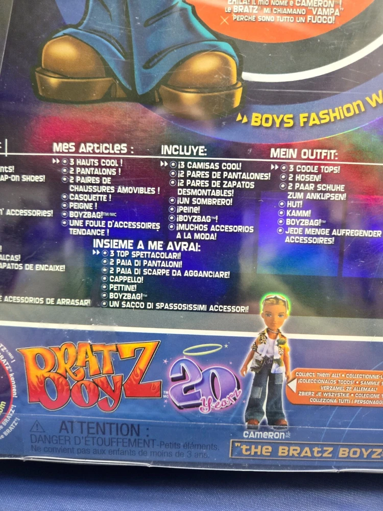 This Bratz Cameron Boy Doll, 20th Year Anniversary, is a must-have for any doll enthusiast. With its stunning blonde hair and straight hair type, this fashion doll is sure to turn heads. The doll's blue eyes complement its light complexion, making it a beautiful addition to any collection.Made of high-quality plastic, this 10-inch doll is durable and perfect for youthful playtime. It belongs to the Bratz franchise and is an original, licensed reproduction. The doll's character is Cameron, and it comes with a set that includes the doll itself. This anniversary doll is a perfect gift for any child who loves dolls.