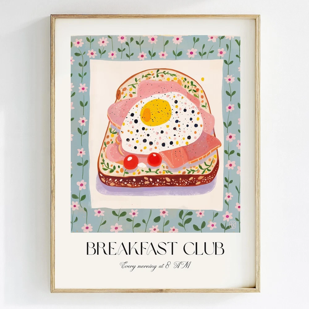 Breakfast Club Wall Art Print Gouache Painting Print Eclectic Kitchen Decor Diner Fine Art Foodie Gift Eclectic Art Print Material: Premium luster photo paper Print type: Inkjet printing One side printed + The finish provides the highest possible resolution and color saturation + Lasts up to 200 years in color and 400 years in black-and-white + Printed on high-quality resin-coated photo base paper medium + Posters can be hung with double-sided tape, tacks, or framed + Hand washing with a gentle cry cloth is recommended for extended durability I will hand select the best choice of paper for your chosen design to ensure top quality results for a beautiful, bright and luxurious print. All prints are sealed in cellophane slips for protection during transportation, and are shipped in a protective cardboard envelope.