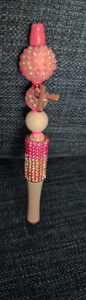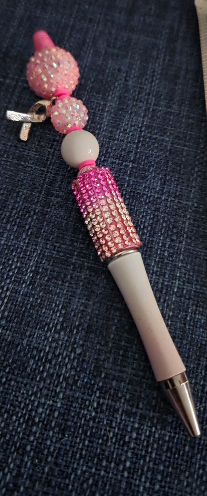 Breast Cancer Awareness Pink Ballpoint Pen with Glitter and Ribbons