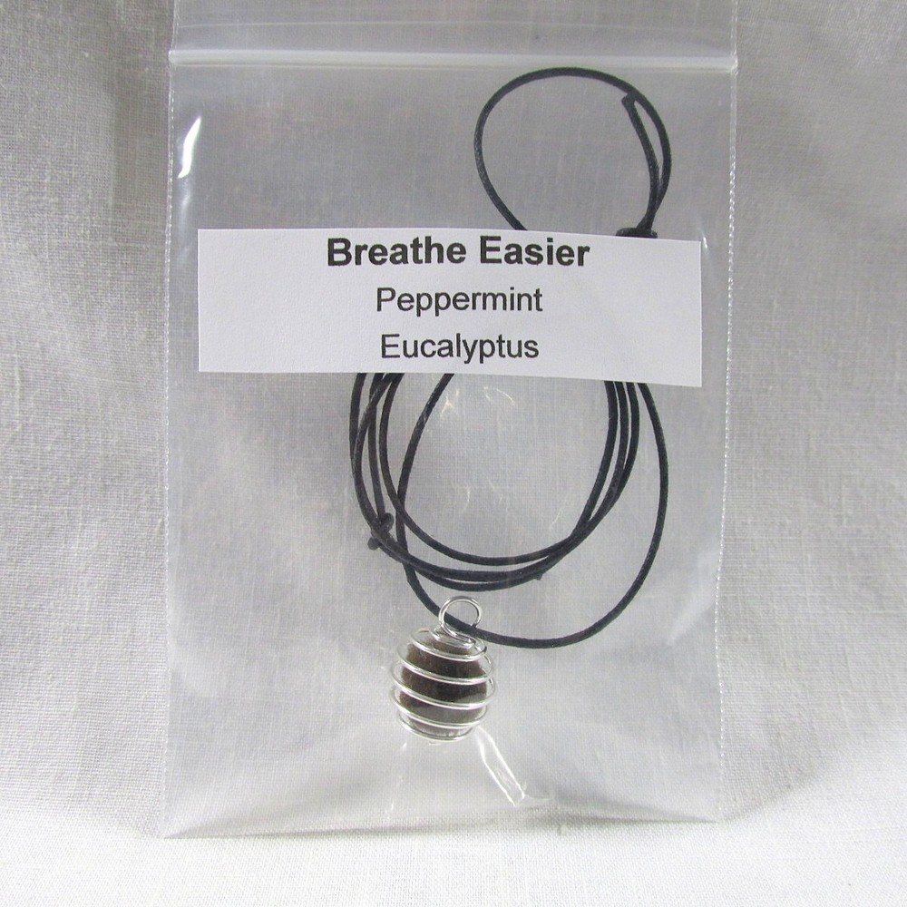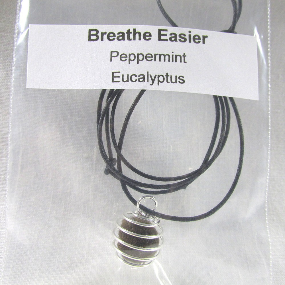 "Breathe Easier" Aromatherapy Necklace, Hanging Pendant Kit, New, Essential Oils, US Seller. Stay young while living by using essential oils to set the mood / attitude while living the life. Just move the coils apart to switch out different scents & pom poms. Kit includes Oil; Necklace with pendant; Pom Pom; Pipette Oil Blend - Sweet Almond Oil; Peppermint & Eucalyptus Color of Pom Pom - Brown Condition - New. Perfect in every respect. Essential Oils - the highest quality oil on the market today. Waxed Cord - Adjustable with a slip knot. Some Essential Oils may not be safe around pets. All our packages ship with tracking Stored in & Ships from our smoke free - pet free home. If there is a problem please contact us we try to respond within a few hours. Thank you for visiting, please visit us again, real soon. HerbsCraftsGifts