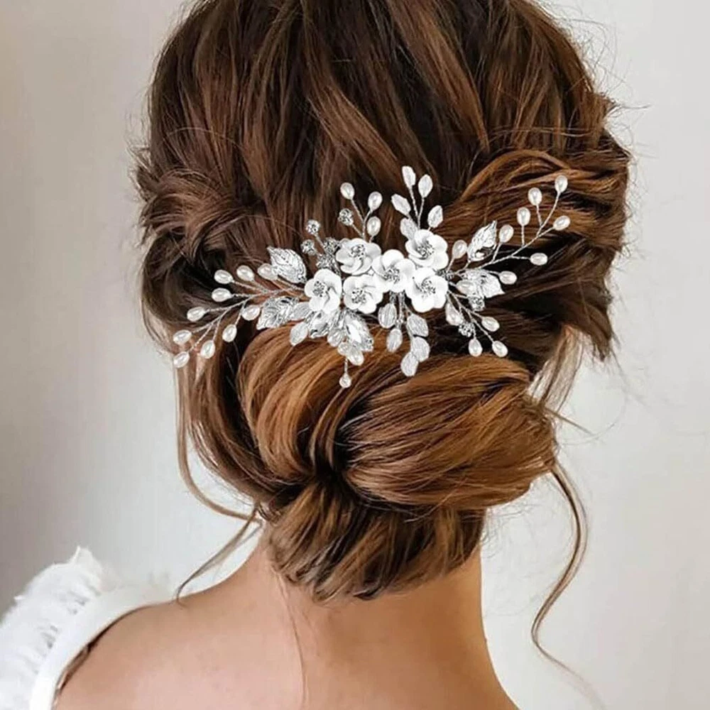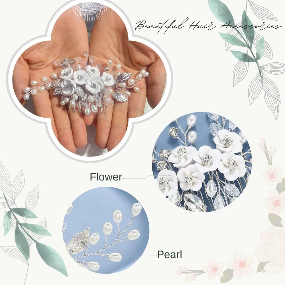 Handmade gold pearl crystal hairpin JEWELRY DETAILS: 1. Due to pure manual measurement, there may be an error of 1 or 2cm. 2. Avoid keeping jewelry in water, chemicals, or damp areas for extended periods. 3. When storing jewelry, avoid exposing it to other jewelry and hard objects to prevent damage. 4. Given differences in photography lighting and background, as well as computer monitors, slight color variations may occur. 5. Due to the complexity of product logistics and transportation, packages or products may be damaged. If this occurs, please us by and we will reply as soon as possible within 24 hours. , a brand determined to create unique and exquisite jewelry. Bringing out the beauty within each person, Using the natural world as a source of inspiration, Attention to detail, Every cut and setting is carefully designed, Making each piece of jewelry a unique work of art. Over time, And attracted more and more customers, It uses its talent and passion to create a stunning collection of jewelry pieces, Bringing endless beauty and inspiration to everyone, Exudes a sparkling, dazzling light. So, to dig, to create a miracle 's collection, and its story slowly began to circulate. The combination of beauty and art, a piece of fashion treasure , a romantic brand forever. Wedding Hair Accessories is made of white polymer clay flowers, pearls, leaves, rhinestine diamonds and alloys Bridal Hair Comb measures 5.9in / 15cm x 3.15in / 8cm and weighs 0.78oz (22g). This bridal hair accessory is silver and does not fade easily Hair Clips are thick but not bulky, each part is smooth and comfortable, can better reduce knots, is of your indispensable hair accessories, the alloy wire is flexible, can change your preferences, perfect to match any hairstyle A well-designed hair accessory design is not only romantic and shiny, it can add more sparkle to your big moments and can give you confidence and beauty This bridal hair accessory is perfect for weddings, engagements, parties, balls and any other meaningful event. This will certainly earn you a lot of praise