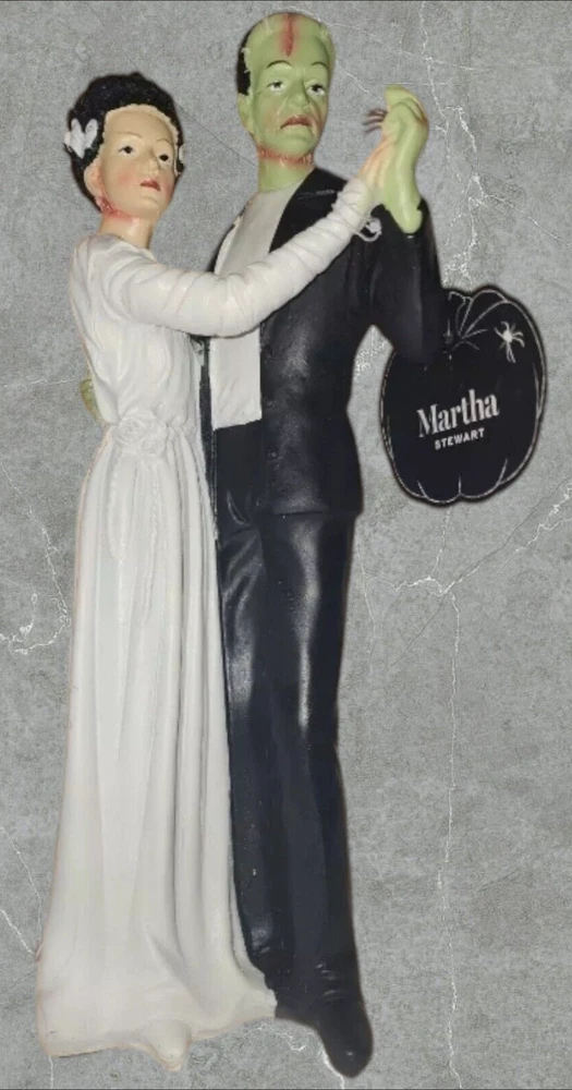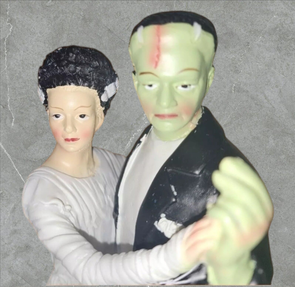 Add a touch of Gothic Halloween to your home with this vintage/retro Halloween Frankenstein with Bride Dance statue. Made of high-quality resin and hand-painted, this medium-sized statue stands at 12 inches tall and 4 1/2 inches wide. The statue features Frankenstein and his bride in a dance pose, perfect for any Halloween occasion. This Halloween decor is perfect for any room and can be displayed on a tabletop or as a free-standing statue. The multicolor statue is part of the Classic Horror product line and is sure to add a spooky touch to your home. No additional parts are required, making it easy to display. Get ready to celebrate Halloween with this unique and high-quality statue. If you would like to see more items like this one, please visit our ebay store by clicking the following link: Cocos Modern Living | eBay Store * RETURNS - Customer Satisfaction is important to us. Good communication is crucial for ebay sales. PRIOR to feedback, notify EZ Sales of any concerns using eBay messaging. Item must be returned in its original condition, with tags if applicable. BUYERS are responsible for return postage. Should the wrong item be shipped, EZ Sales will gladly refund the entire amount including return shipping.