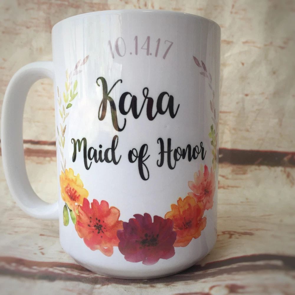 Bridesmaid Coffee Mug Bridesmaid Gift Bridesmaid Proposal Gift Personalized Product Details.. This high quality 11oz. ceramic white mug has a premium hard coat that provides crisp and vibrant color reproduction sure to last for years. Perfect for all hot & cold beverages. The highest quality printing possible is used. It will never fade no matter how many times you wash it. Material: 100% Ceramic. Print both sides. Dishwasher and Microwave Safe. High Gloss + Premium White Finish. Printed in the U.S.A. Personalized & Custom. We support personalized and custom mug to add custom, when placing an order, you can add notes to the "order note" in shipping address section. Also you can contact us directly via message. Shipping Info. Ready to ship in 1 to 2 business days, All products are made-to-order and proudly printed in the United States. Shipped by USPS and DHL, You will receive your order in 5-7 days. Replace & Refund. All products are defective during shipping broken, chipped will be replaced free of charge. You are not satisfied with the product, we will refund 100% money to you. If any other issues arise, please do not hesitate to message, we would be more than happy to assist you.