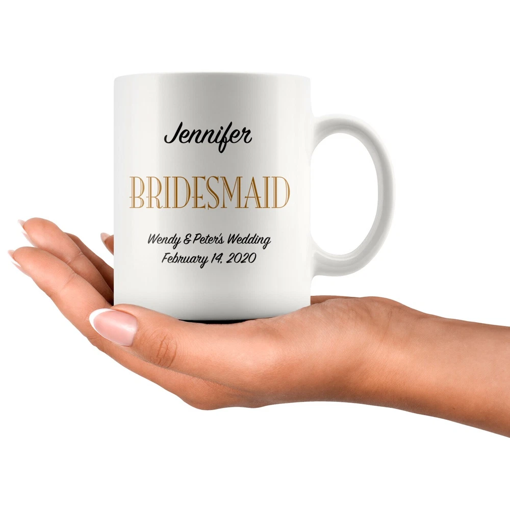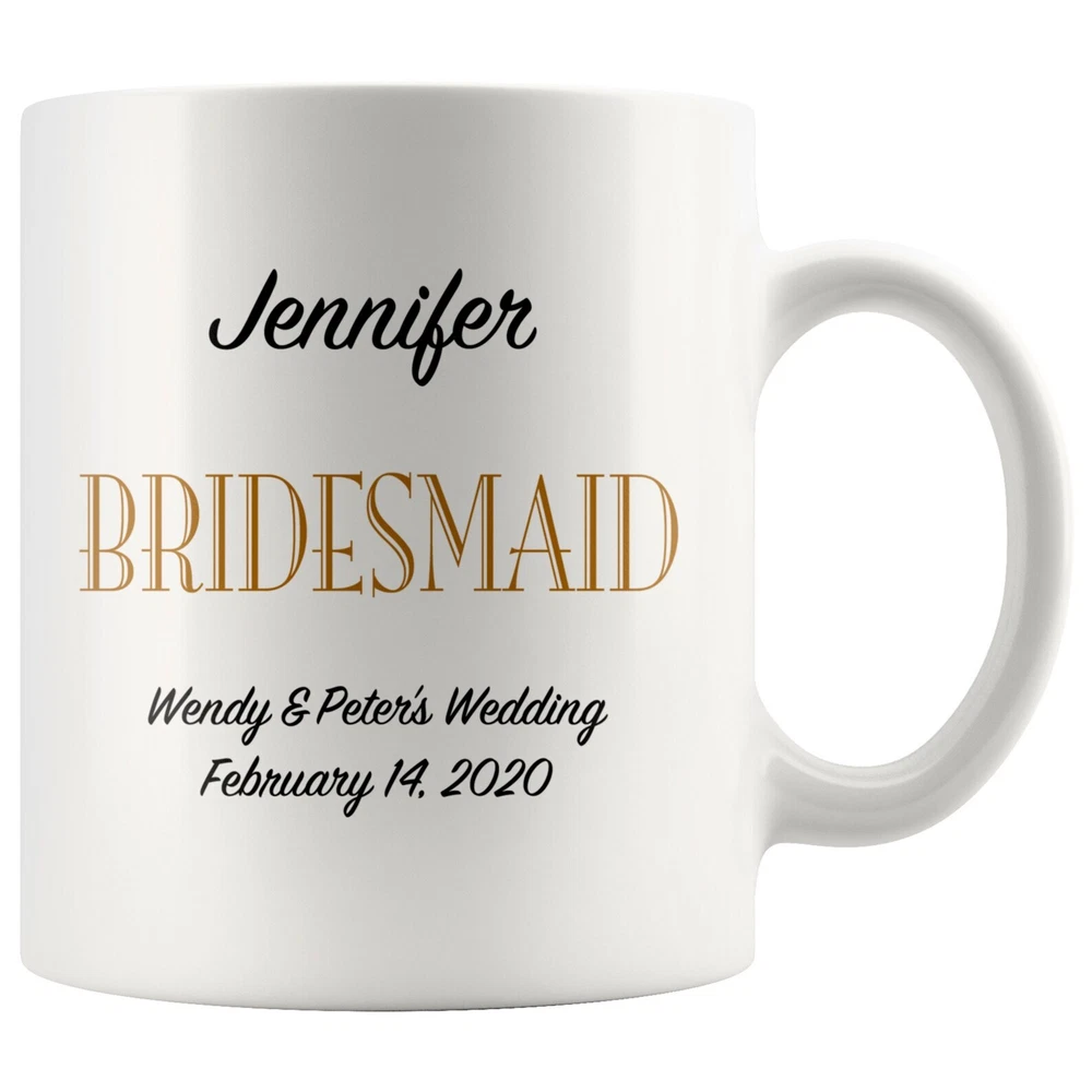 Bridesmaid Coffee Mug Personalized Wedding Gift White Ceramic Coffee Tea Hot Product Details.. This high quality 11oz. ceramic white mug has a premium hard coat that provides crisp and vibrant color reproduction sure to last for years. Perfect for all hot & cold beverages. The highest quality printing possible is used. It will never fade no matter how many times you wash it. Material: 100% Ceramic. Print both sides. Dishwasher and Microwave Safe. High Gloss + Premium White Finish. Printed in the U.S.A. Personalized & Custom. We support personalized and custom mug to add custom, when placing an order, you can add notes to the "order note" in shipping address section. Also you can contact us directly via message. Shipping Info. Ready to ship in 1 to 2 business days, All products are made-to-order and proudly printed in the United States. Shipped by USPS and DHL, You will receive your order in 5-7 days. Replace & Refund. All products are defective during shipping broken, chipped will be replaced free of charge. You are not satisfied with the product, we will refund 100% money to you. If any other issues arise, please do not hesitate to message, we would be more than happy to assist you.