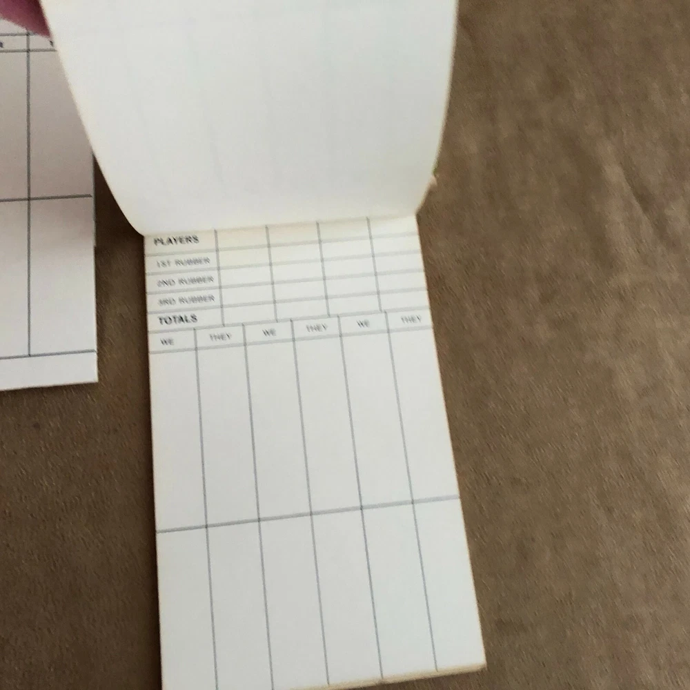 Vintage bridge scoring pads as seen. Check out my Games and other listings. I sell a variety of new and vintage items. Browse by see other items , or at my store Songbird’s treasure. Add me as a favorite seller or store. I am constantly adding new items. Smoke free, pet free home! BUY WITH CONFIDENCE! Same user I.D. since 2003. I strive to provide quality items and excellent customer service. Thanks for looking and come back again!