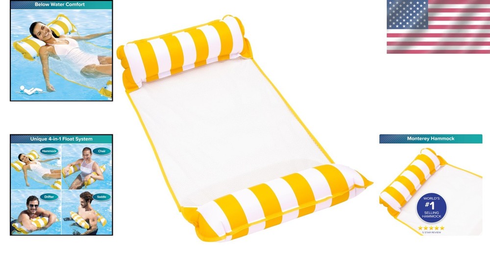 Bright Aqua 4-in-1 Pool Hammock Float - Enjoy Fun Floating for the Whole Family ‹ › ‹ › ‹ › ‹ › ‹ › ‹ › ‹ › ‹ › ‹ › Bright Aqua 4-in-1 Pool Hammock Float Transform your days by the water with the versatile 4-in-1 Pool Hammock Float, designed for ultimate comfort and fun for the whole family! Key Features: Easy On-Off Experience: No need for jumping, ladders, or flopping—just sit back and let this hammock float cradle you as you enter the water. Ideal for individuals between 4 to 6 feet tall, making it especially suitable for seniors and expectant mothers. Sturdy and Comfortable: Crafted from patented non-stick PVC, this float is 50%-70% thicker than standard hammock floats. Enhanced with 50% soft vinyl and 50% soft mesh for added luxurious comfort, ensuring you have a relaxing experience on the water. Multi-Purpose Design: This float serves multiple functions! Whether you need an exercise saddle, a cozy chair, a soothing hammock, or simply a drifter, this versatile piece has you covered wherever you choose to float—lakes, oceans, or swimming pools! Ample Size: Inflated dimensions of 44 x 26 inches with a generous weight capacity of up to 250 pounds, accommodating users of various sizes comfortably. Sleek & Stylish: Available in a rich Bright Aqua color, designed not only to make a splash in functionality but also in style! Why Choose the Bright Aqua 4-in-1 Pool Hammock Float? This exquisite pool hammock is more than just a float; it’s your pass to a serene lounging experience as you bask under the sun. With its easy access and multi-functional use, you can effortlessly transition between floating and enjoying other water activities. Your comfort is paramount, and our sturdy design ensures that you can relax without a worry. Make this summer unforgettable with the Bright Aqua 4-in-1 Pool Hammock Float—your ticket to relaxation and enjoyment by the water! Shipping Free & Fast Shipping - We offer free shipping to most of the USA with a normal delivery time of 3-7 days. However, due to the current situation, additional delivery time (up to 3 weeks) may be required for some items. Alternative Carriers - We may use alternative carriers (e.g. USPS, FedEx, UPS, etc.) to ensure your package arrives safely and on time. Due to the use of multiple carriers, we are unable to provide a tracking number automatically. Handling Time - Orders are processed and shipped within 1-2 business days of receiving cleared payment. Shipping Restrictions - Shipping to Alaska, Hawaii, Puerto Rico, Guam, and other US territories may incur shipping charges or delivery restrictions. Please contact us before ordering, or your order can be refunded/cancelled. State Restrictions - There may be restrictions based on your state of purchase. For example, certain items may not be shipped to California due to state regulations. Contact for Tracking Updates - If you require tracking updates or have any concerns about the delivery of your order, please feel free to contact us, and we will be happy to assist you. Return 30-Day Hassle-Free Returns - We want you to be completely satisfied with your purchase. If you are not, you can return the item within 30 days of receiving it for a full refund or exchange. Easy Return Process - To start a return, simply contact us and we will provide you with a prepaid return shipping label and detailed instructions. Restocking Fee - There are no restocking fees for returns. However, the buyer is responsible for return shipping costs if the return is not due to a seller's error. Refund Processing Time - Refunds will be processed within 5 business days of receiving the returned item in its condition. Payment We accept all major credit cards, PayPal, and Apple Pay for your convenience. Your payment information is secure and encrypted to ensure a safe and seamless transaction. Please complete your payment within 3 days of purchase to avoid any delays in shipping. Feedback Your feedback is extremely important to us. We strive to provide the best products and customer service possible. If you are satisfied with your purchase, please take a moment to leave us a positive review. If you have any concerns or issues with your order, please contact us before leaving negative feedback. We are committed to resolving any problems and ensuring your satisfaction. Contact Us If you have any questions or concerns, please feel free to out to our customer support team. You can contact us through the eBay messaging system. We are available Monday to Friday, 9:00 am to 5:00 pm EST, and we will do our best to respond to your inquiry within 24 hours. Buy it now and enjoy a pleasant shopping experience! Recommended Age Range: Adult MPN: Pool_Float_Hammock Shape: Hammock Type: Pool Float Color: Yellow