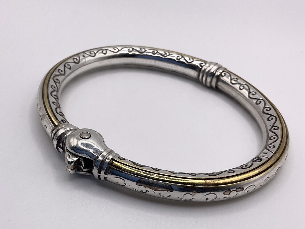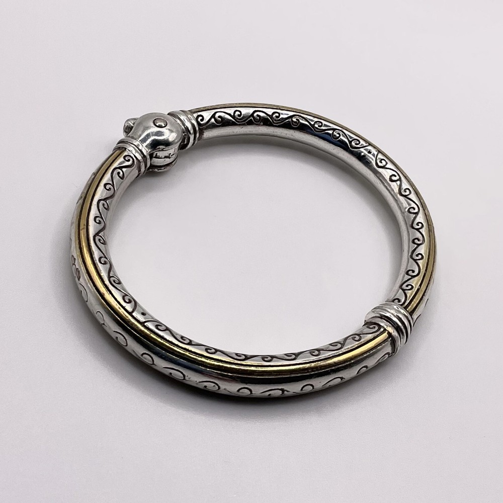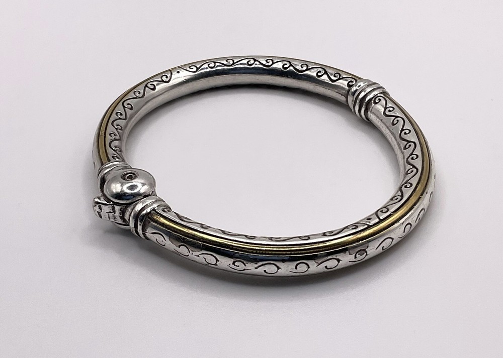 Brighton Silver Gold Toned Hinged Cuff Bracelet 6 1/2”