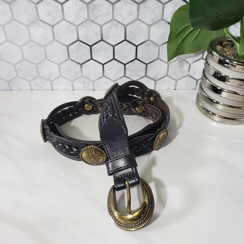 Brighton Vintage Women's Size L 36" Belt Black Braided Leather with Medallions Concho style In good condition Shows light signs of wear Thank you for viewing our products. PRODUCT SOLD AS IS. Please Message With Questions Prior To Purchase. If you have an issue with any of our items please reach out to us prior to contacting eBay. Thanks! Please note: We do sell new and used items. Our used items are pre-owned / pre-loved & may show signs of wear. Please view all photos for details, size, & imperfections as they are a form of the descriptions in addition to what is stated in the description section. We will do my best to inspect each item to find the best quality items possible. If an item is sent to you NEW / SEALED and you open it or remove the tags, it is NO LONGER ELIGIBLE FOR RETURN. Opened items / Removed tags - Means the item is NO LONGER in its original state and can no longer be sold as NEW. -Thank you for your understanding We are often asked about shipping cost. We are excited about your purchase and take pride in your package arriving to you undamaged . We wrap and cushion all necessary items prior to shipping which adds weight to your package. Unfortunately, this is not optional. Thank you for your understanding. We do not accept returns or issue refunds however in the event we do accept your return or issue a refund we do not reimburse your original shipping fee. Due to how eBay handles international shipping we do not accept any international returns. Thanks again!