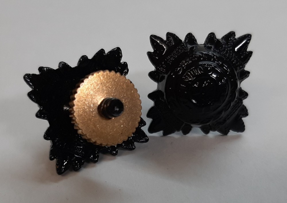 Army rank pips with Tria Juncta In Uno insignia This listing is for 1 pair like the pictures, more can be purchased for desired rank Condition: New old stock Colour: Black Size: 5/8" Photos are stock photos, colour shade, and appearances may differ. Please contact me for any further information Thanks for looking Army rank pips with Tria Juncta In Uno insignia This listing is for 1 pair like the pictures, more can be purchased for desired rank Condition: New old stock Colour: Black Size: 5/8" Photos are stock photos, colour shade, and appearances may differ. Please contact me for any further information Thanks for looking