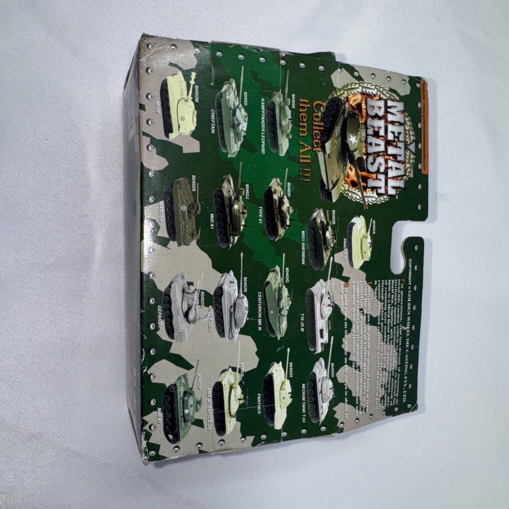 New in original package Package in poor condition Lots The British Chieftain Military Tank die-cast metal model by Golden Wheel is a detailed replica of a Panther tank from World War II. This collectible toy vehicle comes in an unopened box, making it a perfect addition to any military vehicle collection. With its authentic design and high-quality construction, this metal beast is sure to be a standout piece for enthusiasts of tanks and military history.