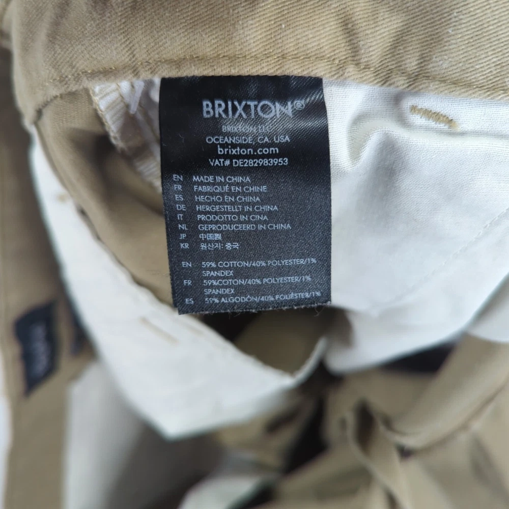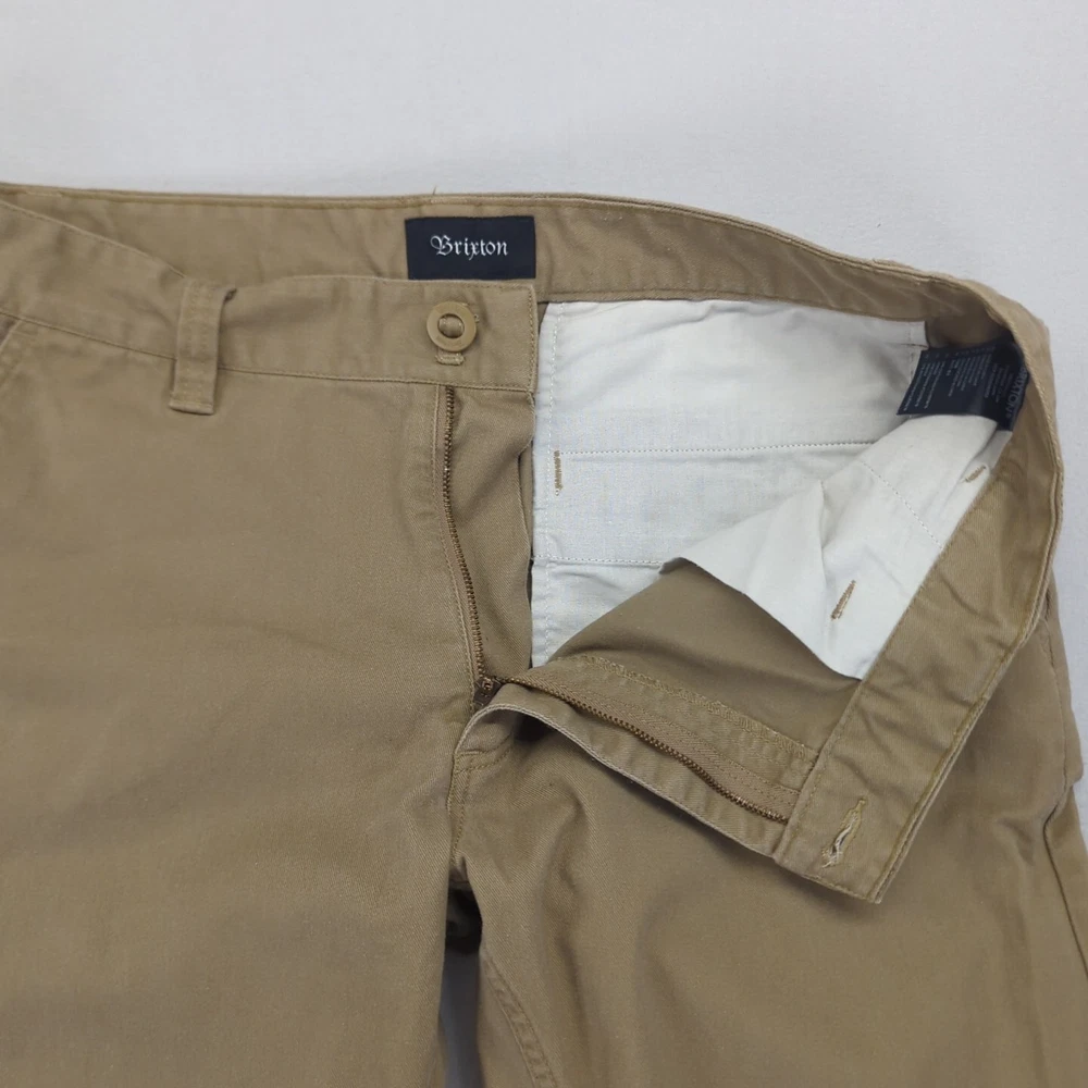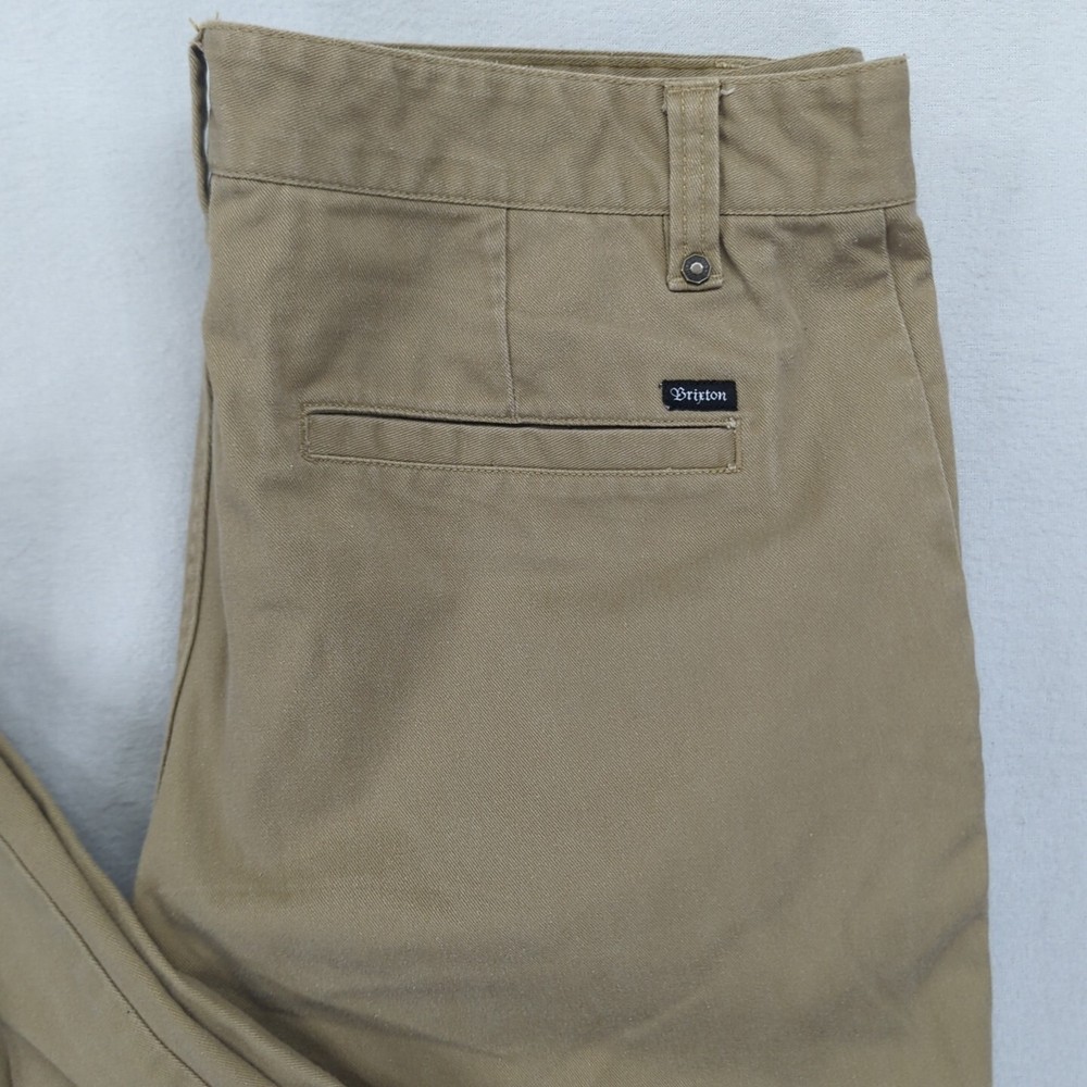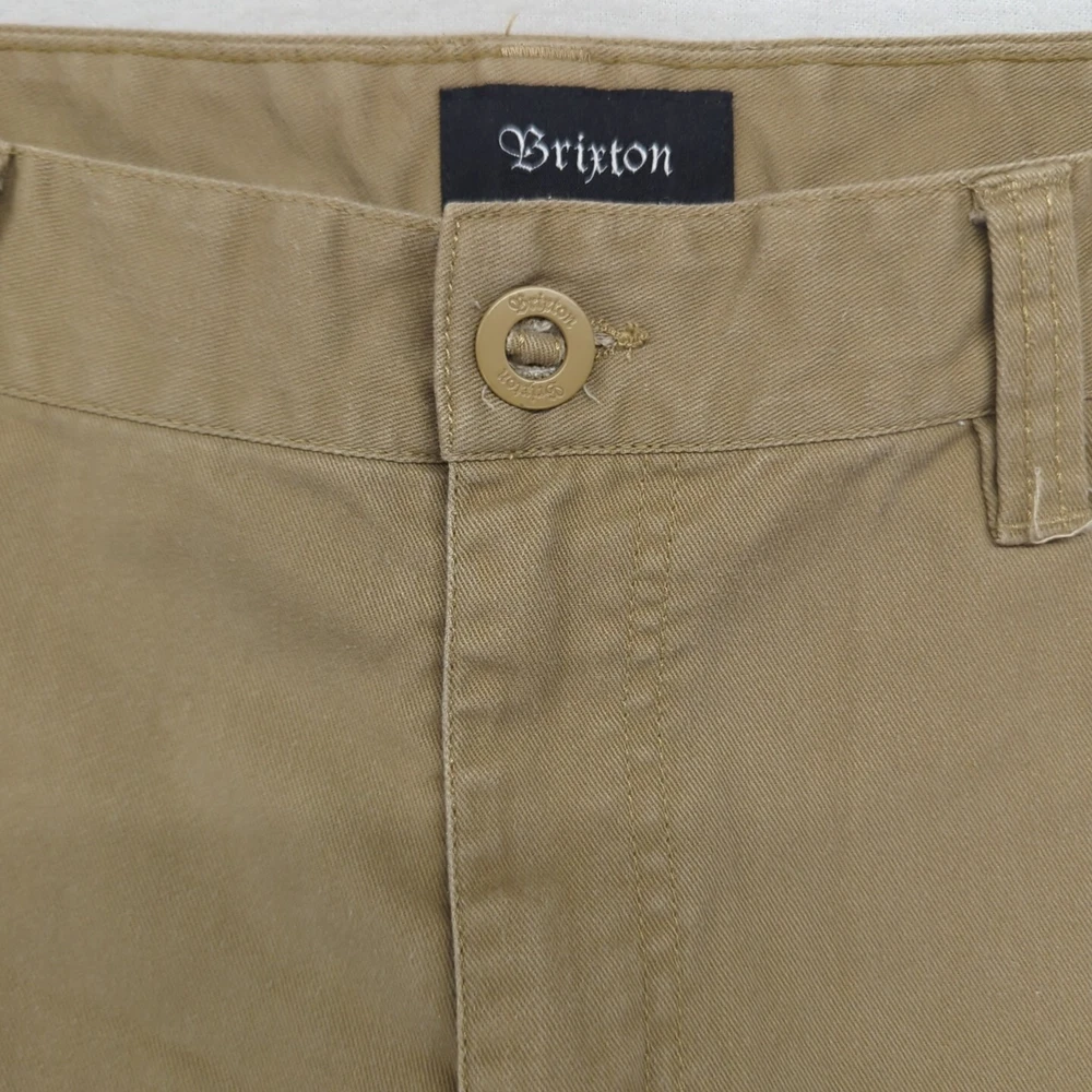 Brixton Chino Jeans Denim Pants Khaki Casual Workwear Standard Fit 36x33 Men Waist: 46cm approx. Waist to Hem: 111cm approx. * PLEASE NOTE THE SIZING PROVIDED. THESE ARE APPROXIMATE MEASUREMENTS. Disclaimer:product colour may slightly vary due to photographic lighting sources or your monitor settings