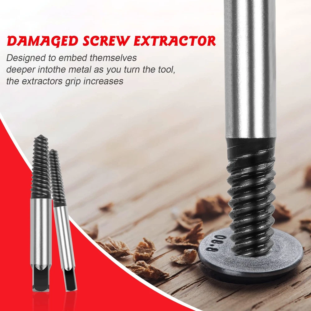 【Reliable Quality】The broken water pipe extractor is made from heavy duty alloy steel, black oxidation with whole body heat treatment, rustproof and sturdy, ensure high hardness and durability, eight different sizes of extractors,basically can meet all the needs of removing debris. 【Square Shank & Deep And Wide Threads】The broken water pipe screw extractor with square end design, allows the extractor to work with wrenches, pliers, tap wrenches or die stocks, aggressive left hand spiral design, easy out style spiral flutes embed themselves to increase grip as resistance increases. 【Easy To Use】Use a drill to drill a deep hole in the screw head, choose a drill bit smaller than the damaged screw, and then reverse the screwdriver counterclockwise into the damaged screw, the operation is convenient and simple,saving a lot of time and energy. 【Eight Size To Choose & Storage Box】8 pcs pipe screw extractor set, #1 for 1/8''-5/32'', #2 for 5/32''-3/16'', #3 for 3/16''-1/4'', #4 for 1/4''-5/16'', #5 for 5/16''-7/16'', #6 for 7/16''-9/16'', #7 for 9/16''-3/4'', #8 for 3/4''-1'', come with a molded box, keep these extractors organized, clean, secure and easy to find. 【Widely Application】The water pipe screw extractor set can remove sunken,peeled,rusted,cracked or corroded screws and bolts,remove broken fasteners, suitable for screws or bolts of various sizes,such as hexagon socket bolts,machine screws,square head bolts,wood screws,hexagon screws,sheet metal screws, are ideal for construction, automotive, home diy projects or for industrial use.