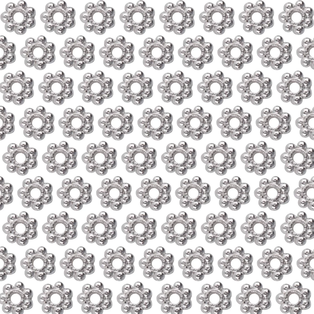 Shape or Style:Beautiful Daisy. Indispensable jewelry component accessories beads, spacer beads. Good accessories for you to diy what you like,such as bracelet, anklets and some other handicraft works. Size: 4mm in diameter, 1.5mm thick, with a 1.5mm hole;Material: Metal; Include of Package: 500 x Christmas Snowflake Silver Spacer Beads. Color: Silver. Diameter: 4mm. Quantity: approx 500pcs. Create beautiful and unique jewelry findings and beads for making your own necklaces, bracelets, charms, and earrings.