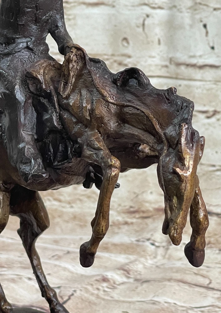 Bronco Buster Remington Western Cowboy Horse Rodeo Rider Bronze Marble Artwork Bronco Buster Remington Western Cowboy Horse Rodeo Rider Bronze Marble Artwork Condition : This sculpture is in a perfect condition. Bronze Dimensions with Marble Base: Height 10" X Width 9" Marble Dimensions: Diameter 7" Height without base:7" Weight:7 LBS Inventory:31-630805331 Experience the thrilling spirit of the American West with this remarkable bronze sculpture depicting a cowboy on a horse, charging through the untamed wilderness at breakneck speed. The horse rears up on its hind legs, poised for a lightning-fast gallop. The cowboy embodies the essence of the Wild West, adorned in a classic cowboy hat, chaps, and a handkerchief, exuding an aura of rugged determination. In his right hand, he firmly grasps a whip, ready to crack it and propel himself forward with incredible velocity. Crafted with the renowned lost wax method, this statue stands without a base, allowing for a seamless integration into any space. It serves as a testament to the artistic prowess of the esteemed sculptor, Remington. Frederic Sackrider Remington, a celebrated American painter, illustrator, sculptor, and writer, dedicated his talent to immortalizing the cowboys, Native Americans, and the U.S. Cavalry of the old American West. His works encapsulate the essence of the 19th-century American West, showcasing his deep admiration for the iconic figures and rugged landscapes. Invite the adventurous spirit of the Wild West into your home or office with this exceptional bronze sculpture. Display it as a testament to the untamed beauty and the captivating stories of the American West. As you behold the masterpiece, you will be transported to a bygone era of daring exploits and endless possibilities. Celebrate the legacy of Frederic Sackrider Remington and his enduring love for the cowboys, Native Americans, and the U.S. Cavalry by owning this magnificent bronze sculpture. It is not merely a work of art but a profound homage to the rich heritage and timeless allure of the American West. inkfrog terapeak Bronco Buster White House Decoration by Remington Bronze Sculpture Statue Figure www.bronzhaus.com Video will open in a new window Using the eBay App? Paste link into a browser window: [isdntekvideo] Shipping Terms : Most of our items are shipped via USPS (United States Postal Service) mail or UPS. Most orders are shipped within 24-48 hours of purchase. Please be aware that not all items are available for USPS shipping due to size and weight. We do ship to Hawaii, Alaska, Canada, Puerto Rico, APO/AE, and U.S. Virgin Islands, however, an additional charge may be required. Please contact us before making any purchases in these areas. For Non-USA customers, you may be responsible for all duty, tax, brokerage fees that may be due upon delivery (shipping costs cover freight charges only). We also ship internationally. Please refer to the "Shipping and Handling" chart for the rates for each area. Payment : We accept just about any form of payment. PayPal, Master Card, Visa or American Express credit cards. Money orders, cashiers checks, and even personal or business checks. For governmental institutions, we will also accept a purchase order. Please understand that for personal or business checks we have to wait for the check to clear (usually 7 days) before shipping. Condition : New Detailed Hand Crafted Hot Cast Bronze Satisfaction Guaranteed. This is Stock Photo, Slight Color Variation!! Listing and template services provided by inkFrog