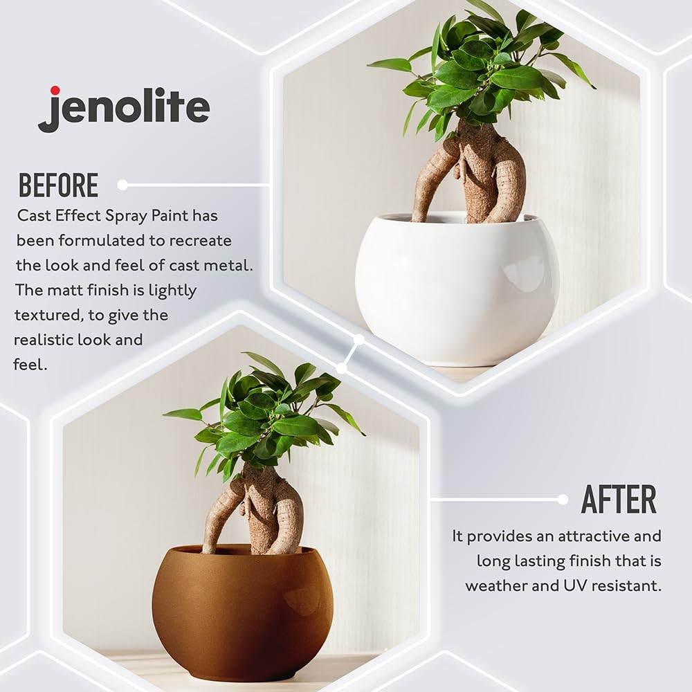 Cast Bronze Effect Spray Paint has been formulated to recreate the look and feel of cast bronze. The matt finish is lightly textured, to give the realistic look and feel of cast bronze. Suitable for interior and exterior use, it is ideal for use on ornaments, garden pots, railings, garden furniture & decorative features. The multi surface paint is suitable for wood, metal, plastic, ceramic, terracotta, cast concrete, etc. It provides an attractive and long lasting finish that is weather and UV resistant. Available in a range of effects. CAST BRONZE: Realistic Cast Bronze Effect Spray Paint - Matt Finish TEXTURED FINISH: Gives realistic look and feel of cast bronze MULTI SURFACE PAINT: Can be used on metal, wood, plastic, ceramics, terracotta, cast concrete, etc USAGE: Ideal for use on ornaments, garden pots, railings, garden furniture & decorative features LONG LASTING: All weather finish - UV and corrosion resistant SIMPLE TO USE: Easy application and quick drying MADE IN BRITAIN