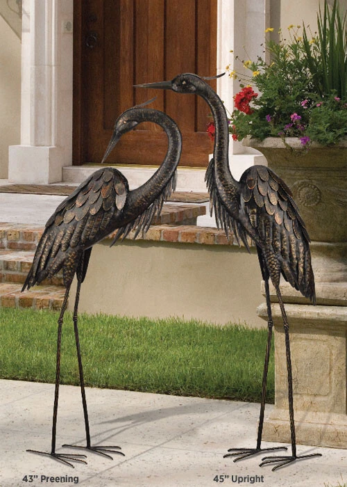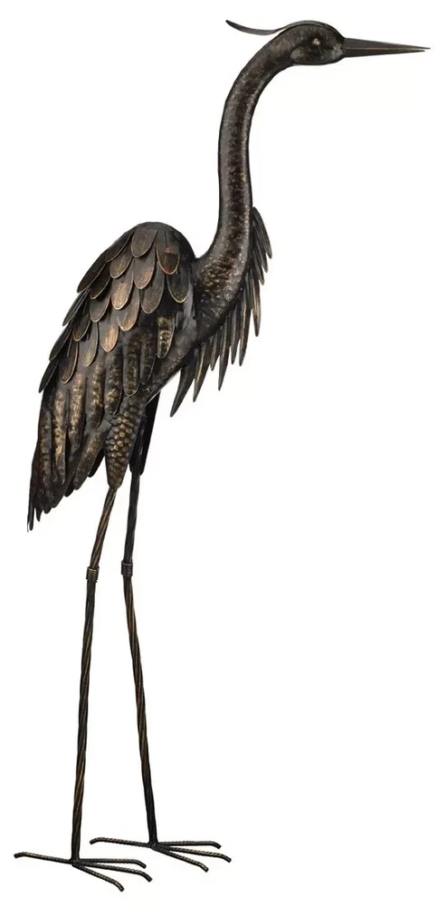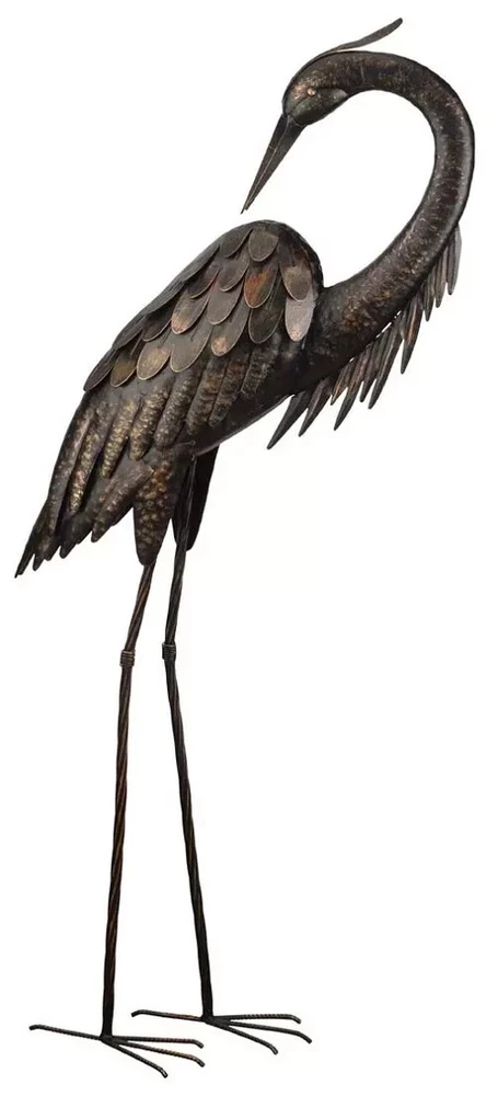 Relaxing by the lake or taking in the sunshine, our beautifully crafted Large Metal Bronze Heron Birds will bring high sophistication and charm into your backyard garden. Our Large Metal Heron Birds have been crafted in all-metal construction with the finest attention given to exquisite design and detail, all the way down to each individual feather. Each of our distinctive Metal Herons is ready for use as self-standing decor and is intended to be placed in your outdoor garden. Included with the each Large Metal Heron statue is a 6" U-shaped ground stake that can be used to provide maximum ground stability when placed outdoors. These metal crane birds are also fully balanced and can be placed gracefully inside your home, on the porch, or on any flat surface. Capture natures beauty with this striking garden accessory gift, our Large Heron Birds is sure to impress all your garden visitors! Additional Info: Large Bronze Heron Bird - Upright 45" Tall Graceful 3-dimensional Metal Heron Statue. All-Metal construction with careful detail. 6" U-Shaped stability ground stake included. Great indoors & outdoors, in the garden, porch or balcony. An exquisite garden statue gift!