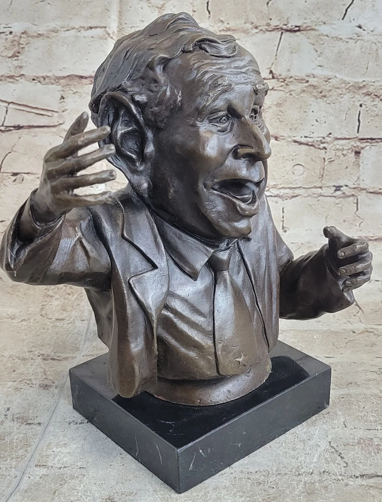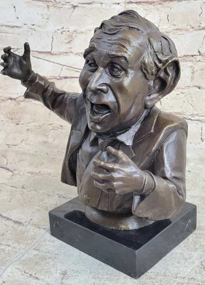 Bronze Sculpture Original President Statue Home Office Decoration Decor Figurine Bronze Sculpture Original President Statue Home Office Decoration Decor Figurine Condition : This sculpture is in perfect condition. Bronze Dimensions with Marble Base: Height 10" x Width 9" Marble Dimensions: 5" X 5" Height without base: 9" Weight: 9 LBS Inventory: 43XN12166934 Unique Collector's Edition Bust of President George W. Bush This exceptional bronze bust of former U.S. President George W. Bush is a one-of-a-kind collector's piece, capturing the 43rd President with a distinct and exaggerated portrayal. The artist, Mavchi, has uniquely emphasized Bush's features, giving him very large ears and a prominently large head, adding a playful yet respectful character to this distinguished figure. This sculpture, with its finely detailed craftsmanship, offers a creative interpretation of the former President, making it a truly timeless work of art. Expert Craftsmanship and Attention to Detail Handcrafted with the utmost attention to detail, this bust was created using the ancient lost wax method, a process that ensures each nuance and expression of the subject is faithfully preserved. The bronze sculpture is finished with a rich brown patina, adding depth and warmth to the piece. The combination of the artist's vision and the meticulous casting technique results in a sculpture that is both visually striking and artistically significant. A Distinguished Piece for Any Collection Resting on a sleek black marble base, this sculpture is not only a tribute to George W. Bush but also a statement piece that will stand out in any room or office. Its uniqueness and artistic merit make it an ideal decorative gift for collectors, history enthusiasts, or anyone with an appreciation for political art. Signed by the artist Mavchi, this bust is more than just a representation; it is a celebration of craftsmanship and creativity. Shipping Terms : Most of our items are shipped via USPS (United States Postal Service) mail or UPS. Most orders are shipped within 24-48 hours of purchase. Please be aware that not all items are available for USPS shipping due to size and weight. We do ship to Hawaii, Alaska, Canada, Puerto Rico, APO/AE, and U.S. Virgin Islands, however, an additional charge may be required. Please contact us before making any purchases in these areas. For Non-USA customers, you may be responsible for all duty, tax, brokerage fees that may be due upon delivery (shipping costs cover freight charges only). We also ship internationally. Please refer to the "Shipping and Handling" chart for the rates for each area. Payment : We accept just about any form of payment. PayPal, Master Card, Visa or American Express credit cards. Money orders, cashiers checks, and even personal or business checks. For governmental institutions, we will also accept a purchase order. Please understand that for personal or business checks we have to wait for the check to clear (usually 7 days) before shipping. Condition : New Detailed Hand Crafted Hot Cast Bronze Satisfaction Guaranteed. This is Stock Photo, Slight Color Variation!! Listing and template services provided by inkFrog