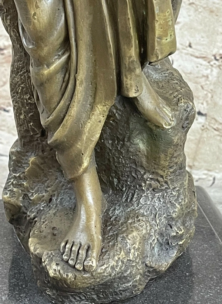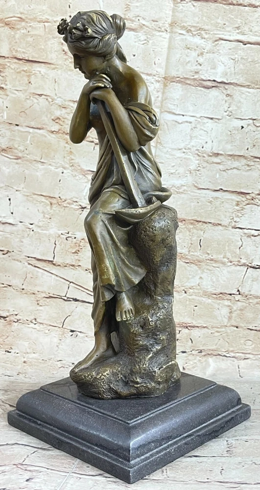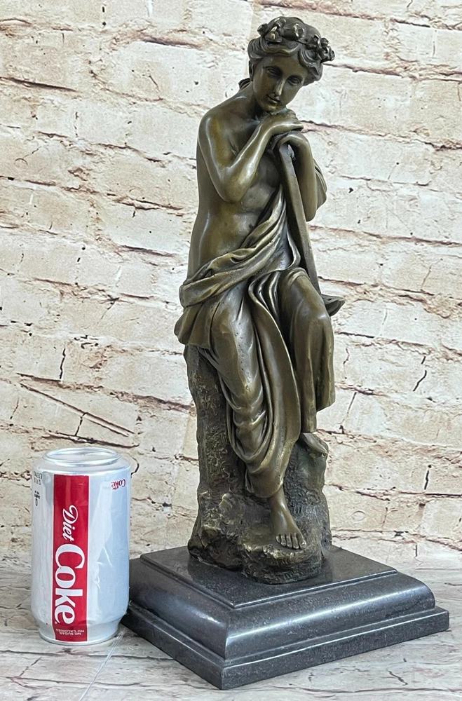 . Condition : This sculpture is in perfect condition. Bronze Dimensions with Marble Base: Height 16" X Width 6 1/2" Marble size: diameter 6 1/2" Height without base15" Weight:14 LBS Inventory:1Y0825112 This enchanting sculpture portrays a seated woman in a moment of serene contemplation. With her chin resting on her hands and a dreamy gaze towards the ground, she emanates a natural and calm beauty. Her wavy hair cascades down her back, adorned with a delicate crown of flowers that adds to the overall charm of the piece. Crafted using the lost wax method, this sculpture showcases intricate details that capture the essence of the artist's vision. The use of this ancient casting technique ensures a lifelike quality and a level of craftsmanship that is both timeless and captivating. The sculpture is elegantly presented on a black marble base, adding to its visual appeal. Signed by the talented artist Milo, this sculpture not only reflects the artist's skill but also bears the mark of authenticity. Whether displayed in a home or office, this exquisite piece serves as a celebration of beauty, simplicity, and the enduring artistry of the lost wax method. inkfrog terapeak Lost Wax Hotcast Bronze Sculpture Nude Lovely Woman Resting Art Nouveau Decor www.bronzhaus.com Video will open in a new window Using the eBay App? Paste link into a browser window: [isdntekvideo]