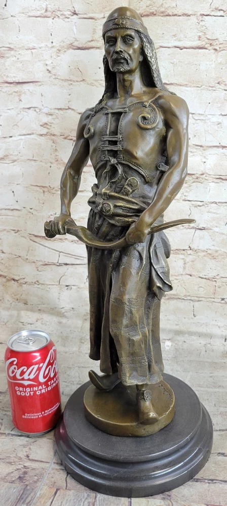 Bronze Sculpture Stunning Hot Cast Middle Eastern Warrior Artwork Figurine Sale Bronze Sculpture Stunning Hot Cast Middle Eastern Warrior Artwork Figurine Sale Condition : This sculpture is in a perfect condition. Bronze Dimensions with Marble Base: Height 20" X Width 7" Marble Dimensions: Diameter 7" Height without base:19" Weight:18 LBS Inventory:48STE269C9584 "L'Emir" is a striking and evocative bronze sculpture that pays homage to the powerful nomadic chieftains of the Middle East, reminiscent of those who once confronted the crusaders. Every detail of this sculpture is meticulously crafted to capture the essence of this formidable figure. From his piercing eyes and flowing beard to his robust physique, leather vest, flowing robe, and distinctive pointed footwear, every aspect of this chieftain's appearance commands attention. He brandishes a long, curving sword, adding to the sense of authority and strength that radiates from this sculpture. This exquisite artwork is crafted entirely from bronze, a testament to the artist's dedication to quality and artistry. Handmade with care, it undergoes the time-honored Lost Wax Method of casting, ensuring that every nuance of the original design is faithfully preserved. The sculpture is proudly mounted on a sturdy marble base, adding a touch of elegance to its commanding presence. It bears the signature of the talented artist, M.A. L. Goudray, further authenticating its uniqueness and value. "L'Emir" is a captivating piece that invites viewers to appreciate the rich history and culture of the Middle East through the art of bronze sculpture. STUNNING LARGE HOT CAST AUSTRIAN VIENNA BRONZE ORIENTALIST ARAB WITH SWORD SALE www.bronzhaus.com Video will open in a new window Using the eBay App? Paste link into a browser window: [isdntekvideo] Shipping Terms : Most of our items are shipped via USPS (United States Postal Service) mail or UPS. Most orders are shipped within 24-48 hours of purchase. Please be aware that not all items are available for USPS shipping due to size and weight. We do ship to Hawaii, Alaska, Canada, Puerto Rico, APO/AE, and U.S. Virgin Islands, however, an additional charge may be required. Please contact us before making any purchases in these areas. For Non-USA customers, you may be responsible for all duty, tax, brokerage fees that may be due upon delivery (shipping costs cover freight charges only). We also ship internationally. Please refer to the "Shipping and Handling" chart for the rates for each area. Payment : We accept just about any form of payment. PayPal, Master Card, Visa or American Express credit cards. Money orders, cashiers checks, and even personal or business checks. For governmental institutions, we will also accept a purchase order. Please understand that for personal or business checks we have to wait for the check to clear (usually 7 days) before shipping. Condition : New Detailed Hand Crafted Hot Cast Bronze Satisfaction Guaranteed. This is Stock Photo, Slight Color Variation!! Listing and template services provided by inkFrog