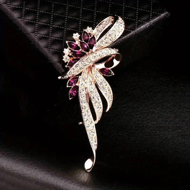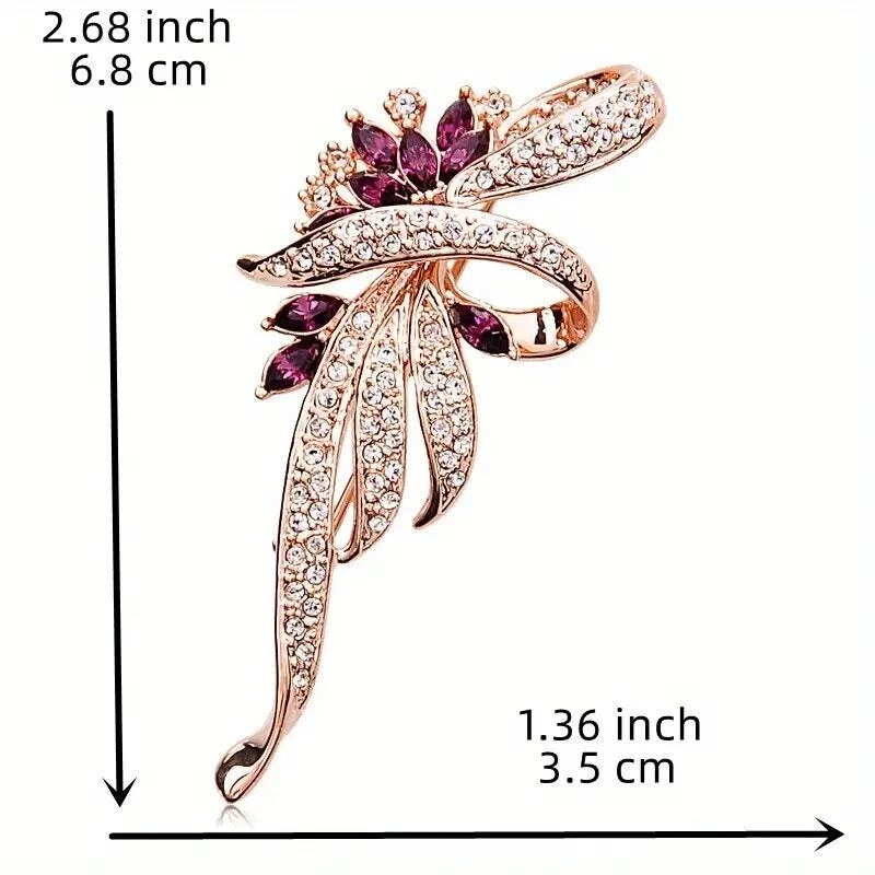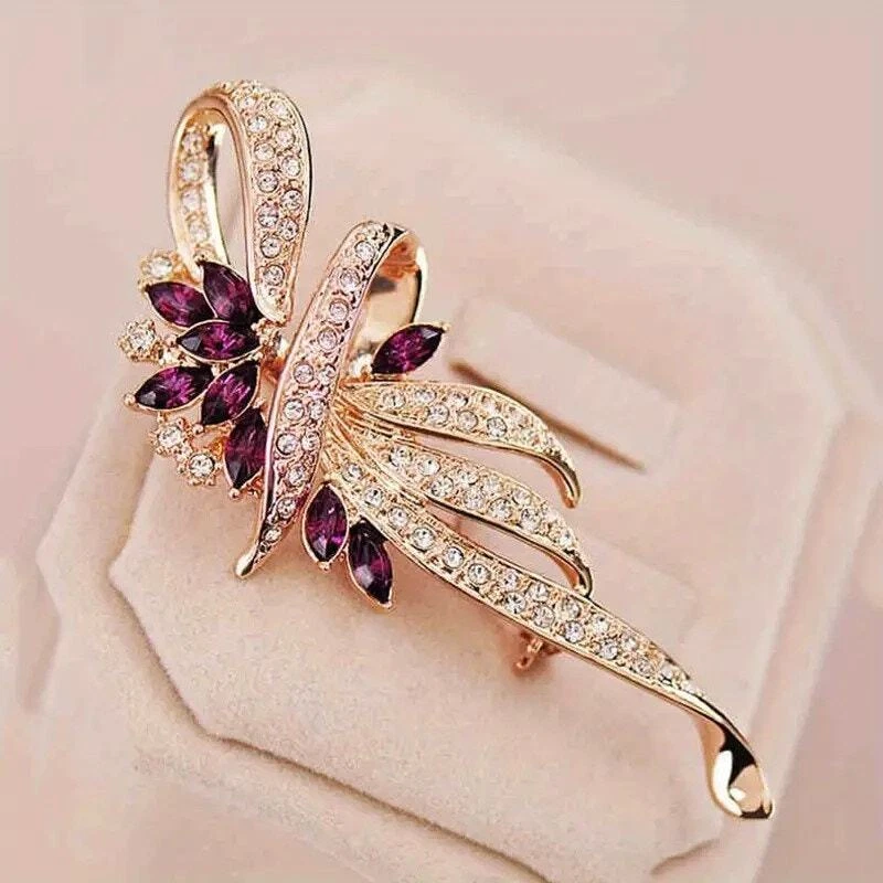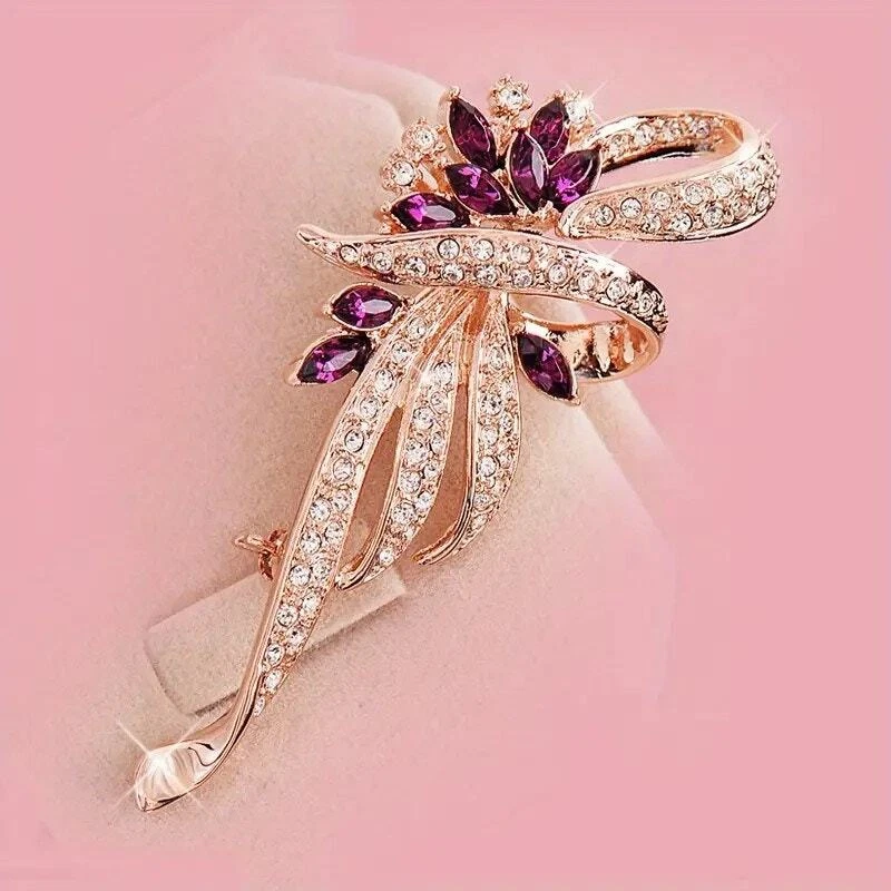 Brooch Romantic Gold-Tone Flower with Rhinestones