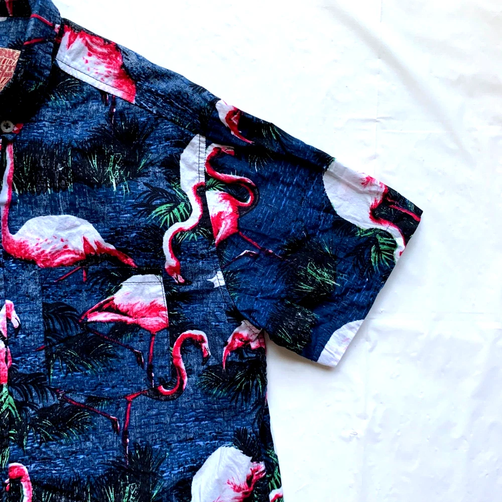 Brooklyn Cloth Hawaiian Shirt Mens M Flamingo Print Button Down Beach Island NEW Condition: New without tag. Excellent condition. Please see all photos for condition and measurements. Please let us know if you have any questions. Thanks for shopping with us. Important Note: Please compare our measurement photos to your favorite garments to ensure correct sizing and fit. We store our items in a pet and smoke free environment Coupons cannot be combined with offers.