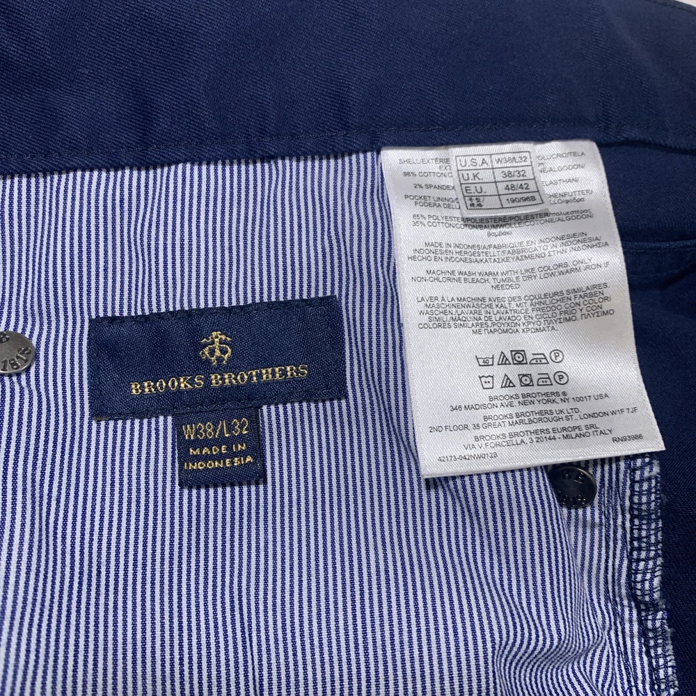 Brooks Brothers Pants Mens 38 x 32 Clark Fit Navy Flat Front Chino Trousers Pre-owned condition! Please see all photos for exact condition as all flaws will be shown throughout the photos! Please review the measurements provided in the photos. It is best to compare our listing's measurements to a similar article of clothing in your closet to ensure a proper fit! Shipped USPS Ground Advantage! Thanks for your business!