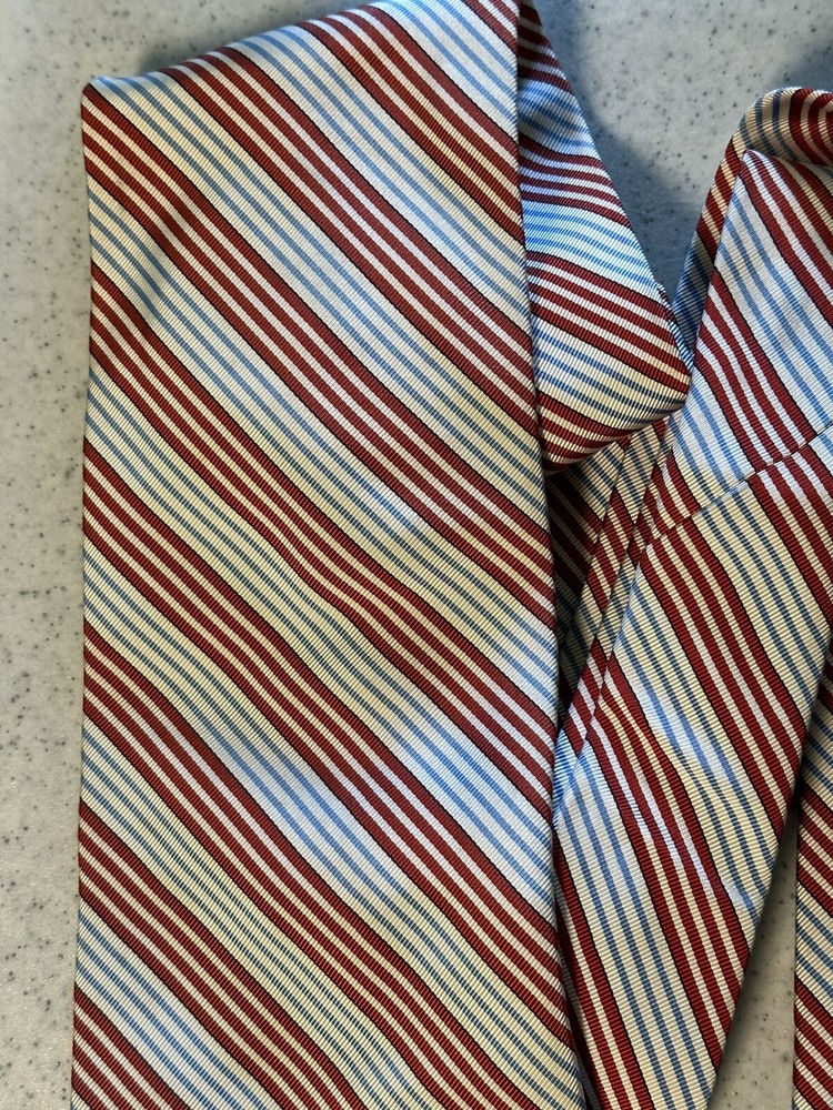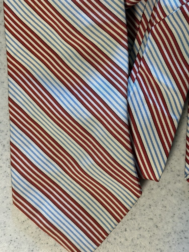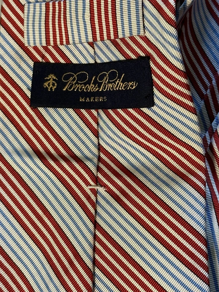 Add a touch of sophistication to your wardrobe with this stunning Brooks Brothers neck tie. The red, white, and blue striped pattern is both classic and stylish, making it perfect for any occasion. Crafted from high-quality silk, this tie is both durable and comfortable to wear. Ideal for the modern man, it is suitable for any formal or casual event. Accessorize with ease and elevate your outfit with this must-have piece.