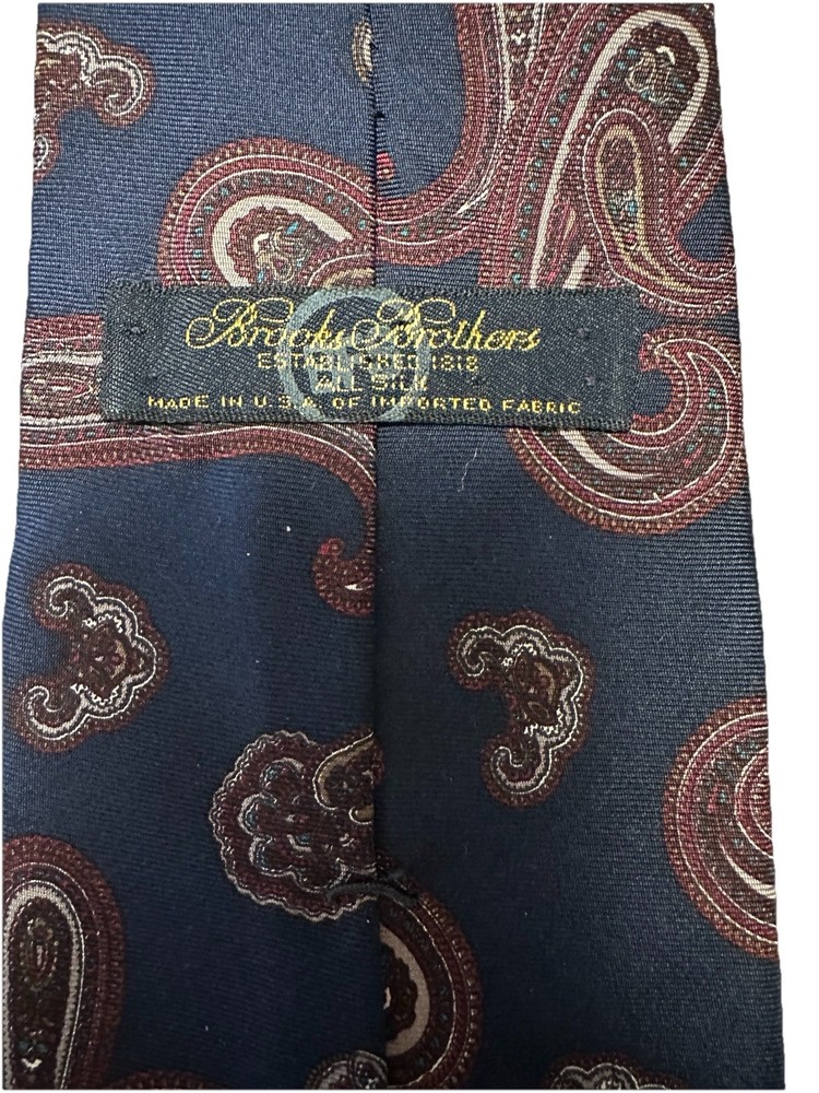 Brooks Brothers Silk Tie USA Navy Red Paisley Classic Vintage Necktie 3.5x57