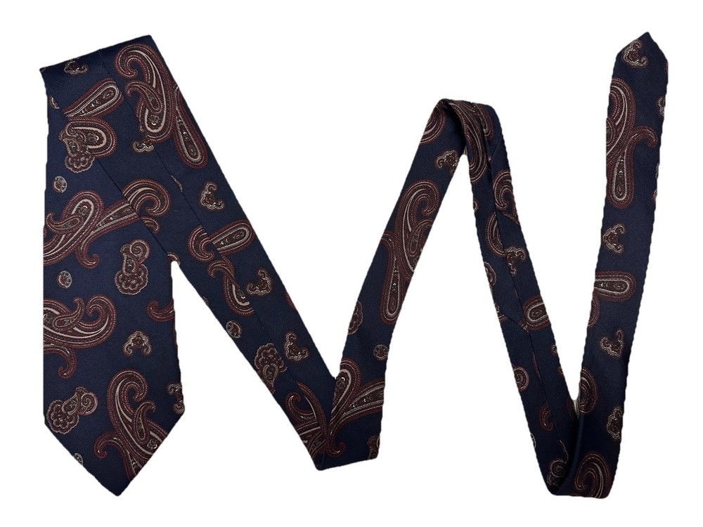 This Brooks Brothers 100% silk necktie offers timeless American sophistication. Made in the U.S.A. from imported fabric, it features a deep navy blue background with a rich burgundy and taupe paisley pattern. A refined accessory that adds a polished touch to any suit or dress shirt — perfect for professional settings, formal events, or vintage menswear collectors. Details: • Brand: Brooks Brothers • Established: 1818 • Style: Men’s Classic Necktie • Material: 100% Silk • Color: Navy with burgundy & taupe paisley design • Made In: USA of imported fabric • Condition: Excellent pre-owned; no major flaws or stains • Measurements: Approx. 3.5x57 inches A quality piece that reflects Brooks Brothers’ heritage of craftsmanship and classic style.