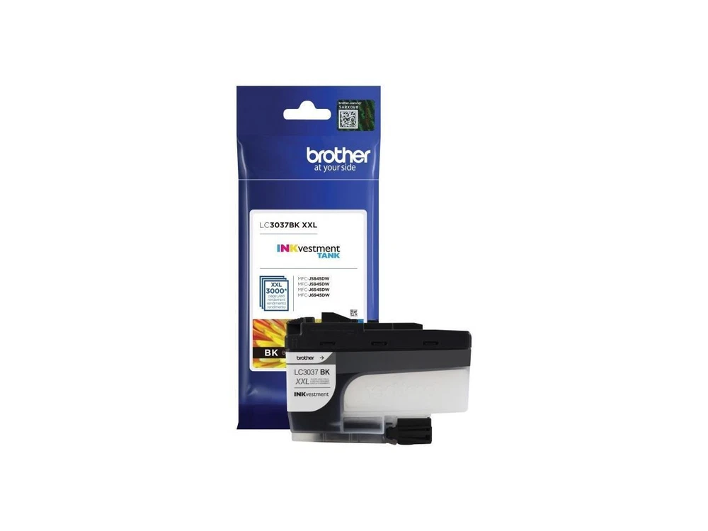 Brother LC3037BK Super High Yield Ink Cartridge - Black Brother LC3037BK Super High Yield Ink Cartridge - Black Features DELIVERS SUPERIOR INKJET PRINT QUALITY: Brother Genuine LC-3037BK single pack super high-yield black INKvestment Tank ink cartridge delivers high-quality, sharp inkjet prints that you can rely on for up to 3,000 pages.(1) INTELLIGENT ENGINEERING: Intelligently engineered as part of a complete printing system designed to work in seamless unison with your Brother INKvestment Tank inkjet printer to deliver sharper images and high-quality output. PRINTS THAT LAST: Brother Genuine ink has undergone extensive testing to help ensure and protect reliable operation of your inkjet printer while delivering high-quality prints that withstand the test of time. ENVIRONMENTALLY RESPONSIBLE: Brother offers an environmentally responsible way to dispose of Brother Genuine cartridges. Visit manufacturers website for more information. -- DASH REPLENISHMENT CARTRIDGE: Upon activation with your compatible Brother printer, Brother Genuine LC3037BK replacement cartridges can be automatically ordered through -- Dash Replenishment and sent directly to your door. FOR USE WITH: Use Brother Genuine LC3037BK with Brother INKvestment Tank printer models: MFC-J5845DW, MFC-J5845DW XL, MFC-J5945DW, MFC-J6545DW, MFC-J6545DW XL and MFC-J6945DW that feature Brother INKvestment Tank technology. Fast and Free Shipping You're already purchasing the item. Why pay additional for shipping, especially slow shipping? We get your order shipped out within 1-business day and delivered to your doorstep as quickly as possible. Competitive Pricing With our dynamic pricing model, our prices are always competitive. Our prices are some of the lowest that you will find on the internet. Rest assured that you're getting a good deal when purchasing with us. 30-day Money Back Guarantee We are committed to making sure that you leave this transaction satisfied. If you're unhappy with the product for any reason, you may return it back for your money-back or a replacement within 30 days. No questions asked!