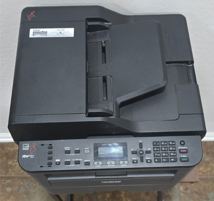 Brother MFC-L2750DW Wireless Monochrome Laser All-in-One Tested in working condition Drum Life: 68% Toner included: 90% Page Count: 4062 Missing paper output flap on top of printer