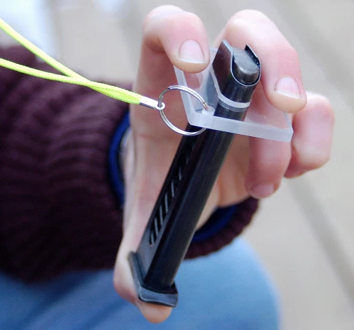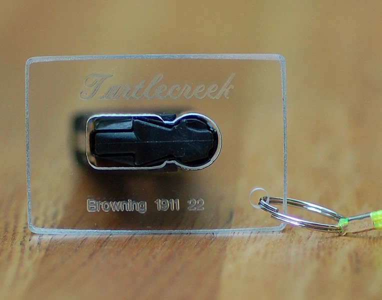 Tool to aid in loading the Browning 1911 .22LR 10 round pistol magazines. This listing is for the magazine speedloader only. Constructed of rugged, clear, non-yellowing, weatherproof hard plastic (same plastic as aircraft windows)... Simply slide it over the top of the magazine and pull the loader down against the side loading lever to compress the spring. There are no moving parts to break or jam. No more aching thumbs or sore finger nails. Makes loading a breeze from the first round to the last round. This design works better than any other because the hard plastic does not flex and because you pull it down evenly by placing two fingers on the loader and your thumb at the mag base keeping the loader straight and sliding easily. Lots of finger room. If you are wanting a loading aid for your magazine and tired of struggling to get the rounds in, look no further. Features a small lanyard hole in one corner. Bright yellow nylon lanyard (36" loop) with split ring is included. Made in USA by Turtlecreek Products. See our demo video https://youtu.be/7VdXnu9Jl1o Buy two or more loaders. Make sure each of your shooting buddies has a loader of this quality for his/her own use. Sharing is great but having your own loader is even better.