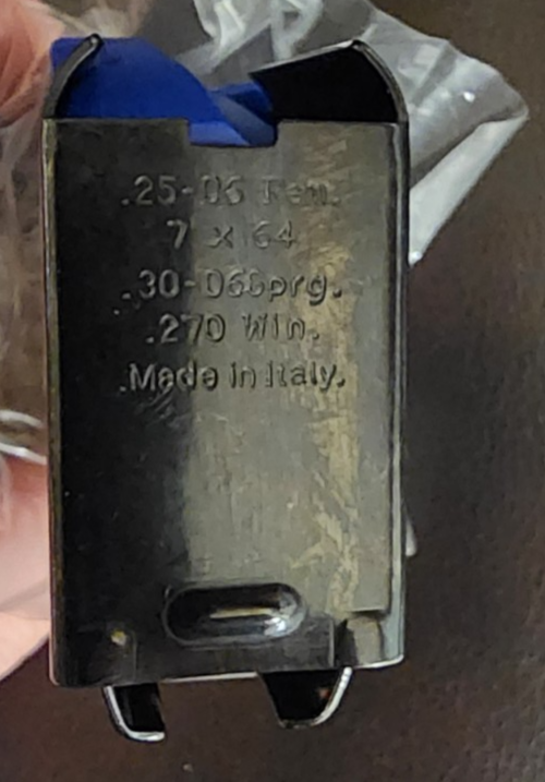 FYI, this fits the Browning Mark III Hunter 30.06 also. Bought 4 extra mags in case of a failure of one, manually ran through some Remington Softpoints and it seemed to lock in and feed OK. Many selling for more $$ (might find one selling for less) but I'll can only vouch for this seller, packaged safe and delivered on time and fit the new description. The "made in Italy" seems to match the original "made in Portugal," as always Caveat emptor.