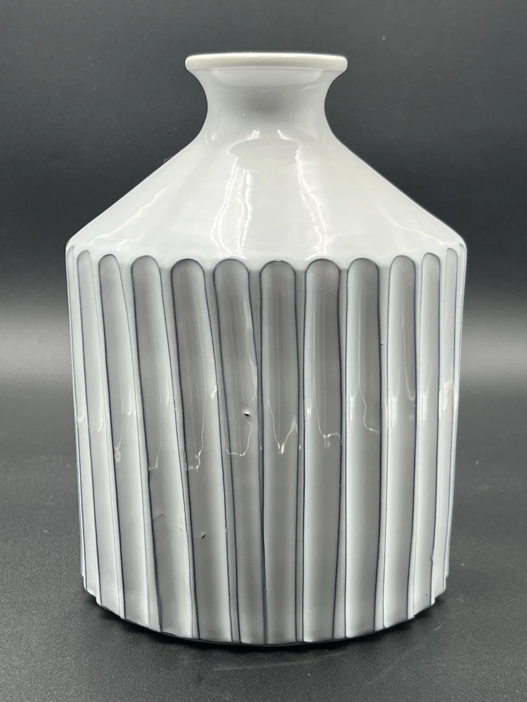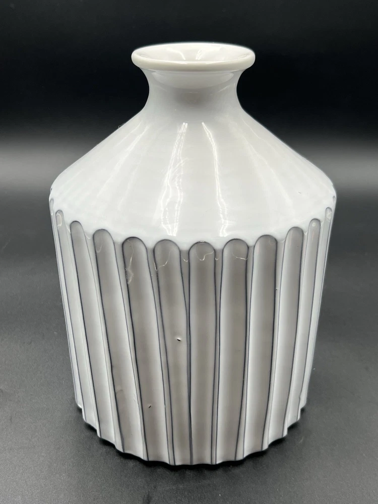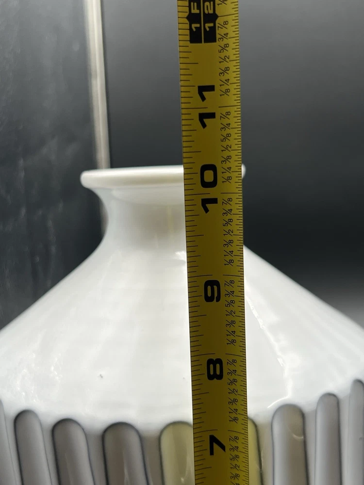 $ 5.28Large clear With white Opalescent stripe bulb shaped vase handmade item