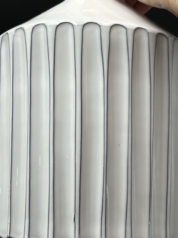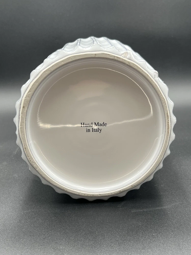 This is a beautiful hand made vase. Measures 10.25”T x 7”D. There is one chip on the rim at the top of the vase. Please see pics. The photo of the bottom is not a chip but a place where the glaze didn’t cover the bisque, but wanted to do a close up of it. We pack safely and ship quickly. Please let me know if you have any questions and thank you for shopping with me!🌼